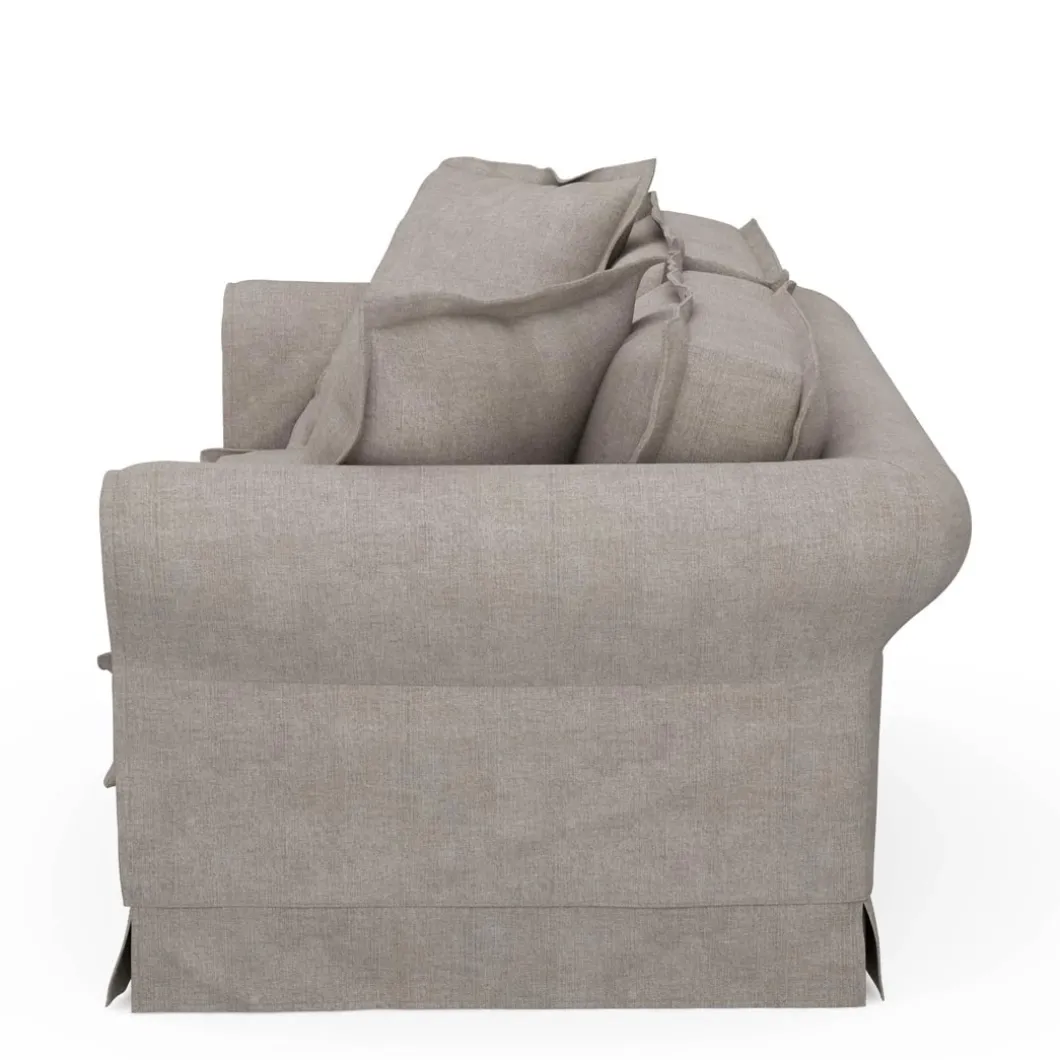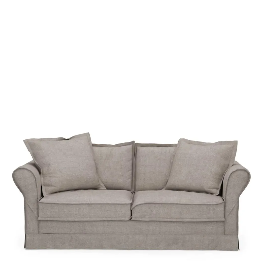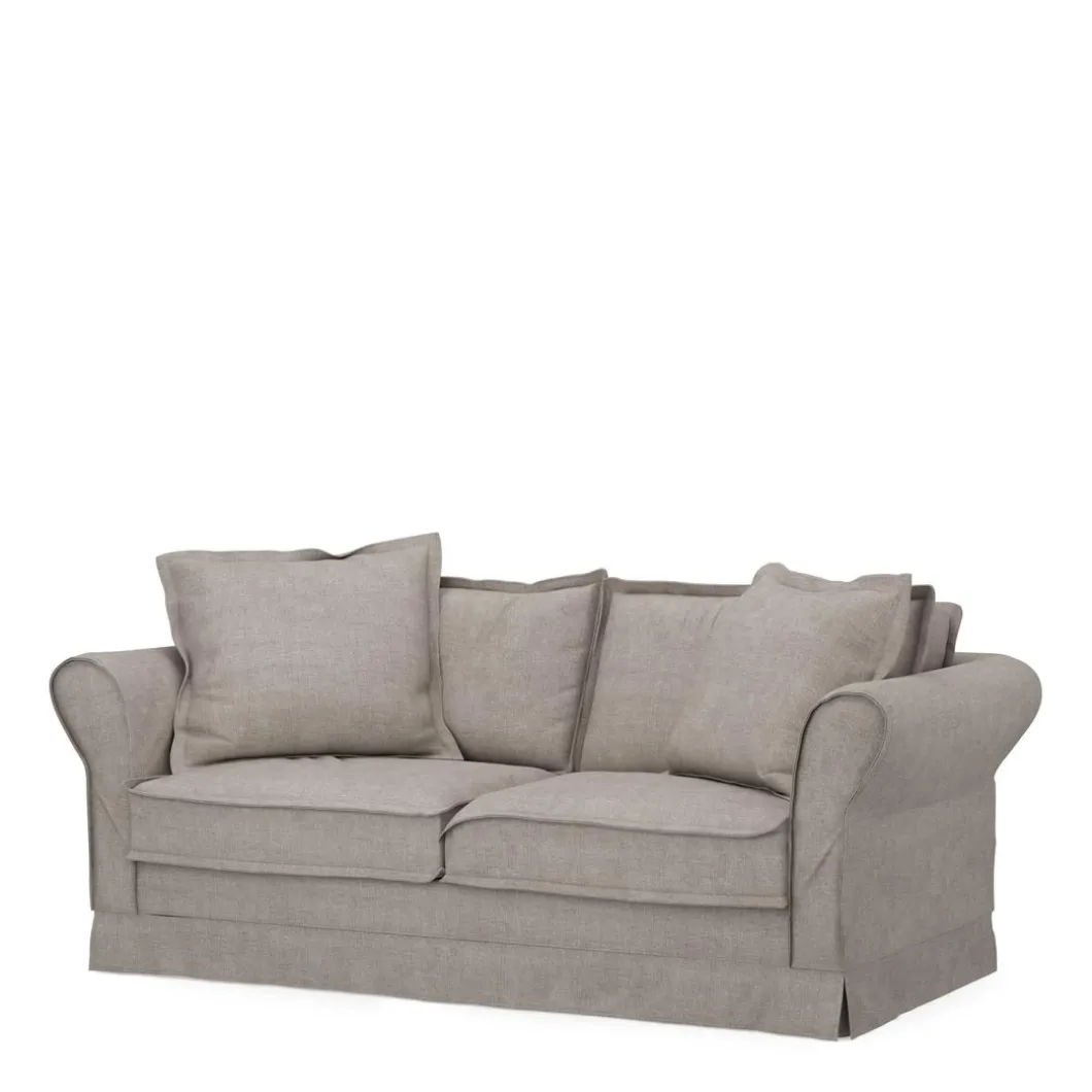 Een ideale maat voor in de zithoek. Meestal wel plaats voor drie personen, op zo’n 2,5-zits bank. En toch niet de volle 3-zits bank. Deze bank heeft een beukenhouten onderstel en de bekleding is van katoen, washed cotton. Die gewassen stof is er in vijf kleuren, en u moet bij een vlek voorzichtig deppen met een droge doek, om daarna met een vochtige doek de vlek te verwijderen.