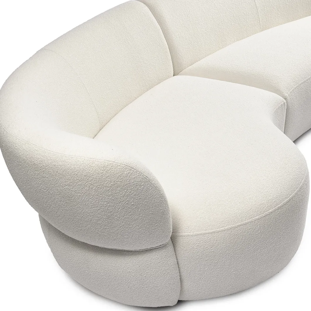 Creëer jouw ultieme ’thuis’ met de modulaire San Remo 2.5 zits Bank met de armleuning links. Bestaande uit een lounger en een corner. Het design van deze sofa is bedacht en ontworpen in samenwerking met Anna Nooshin. Deze rijke Bouclé stof in de kleur Simply White geeft de bank een moderne look en de organische vormen van de elementen maken dit een uniek design! Lounge en leef comfortabel en met de fauteuil en voetstoel te combineren maakt dit de chique look compleet. *Ook verkrijgbaar in de kleur Natural Grey