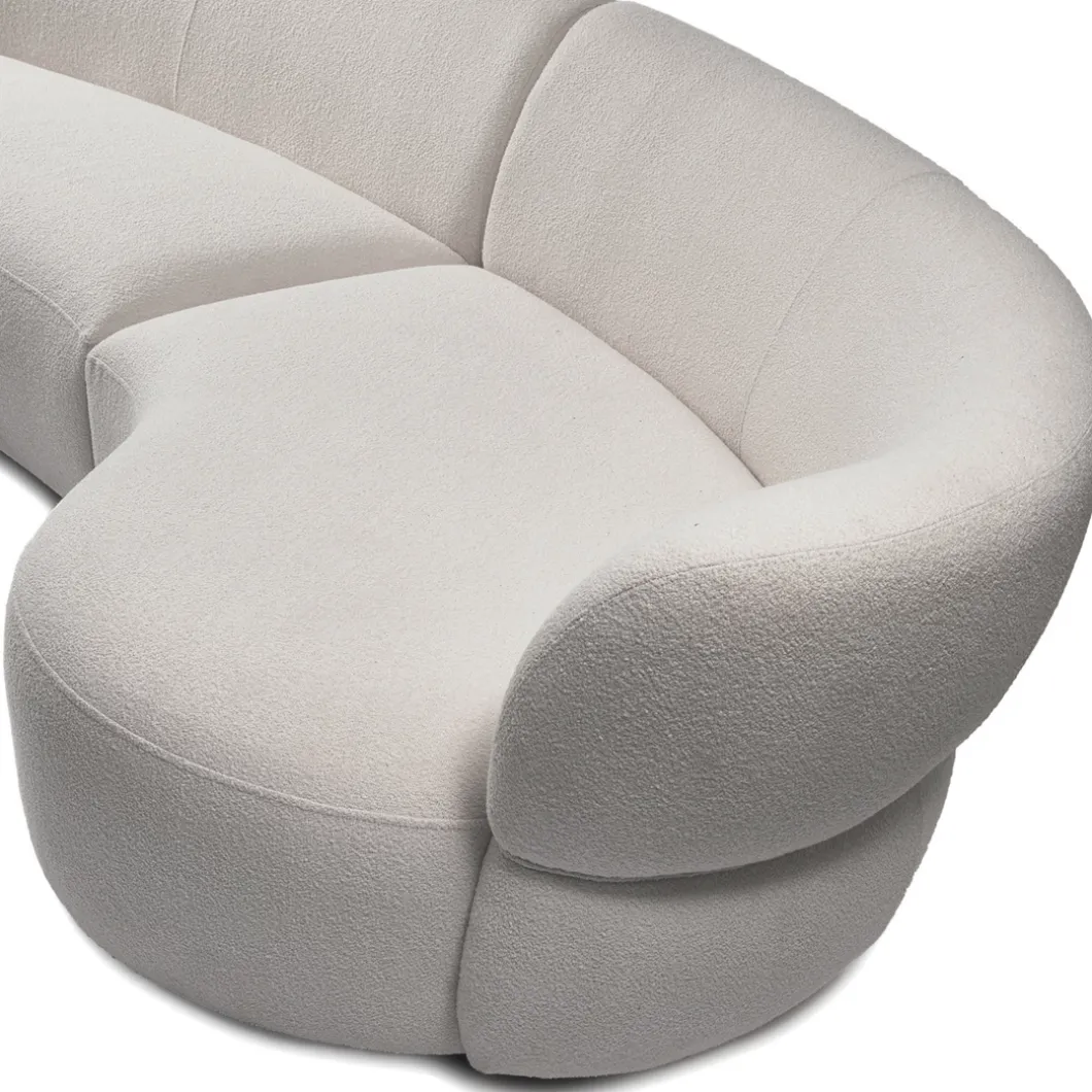 Creëer jouw ultieme ’thuis’ met de modulaire San Remo 2.5 zits Bank met de armleuning rechts. Bestaande uit een lounger en een corner. Het design van deze sofa is bedacht en ontworpen in samenwerking met Anna Nooshin. Deze rijke Bouclé stof in de kleur natural grey geeft de bank een moderne look en de organische vormen van de elementen maken dit een uniek design! Lounge en leef comfortabel en met de fauteuil en voetstoel te combineren maakt dit de chique look compleet.