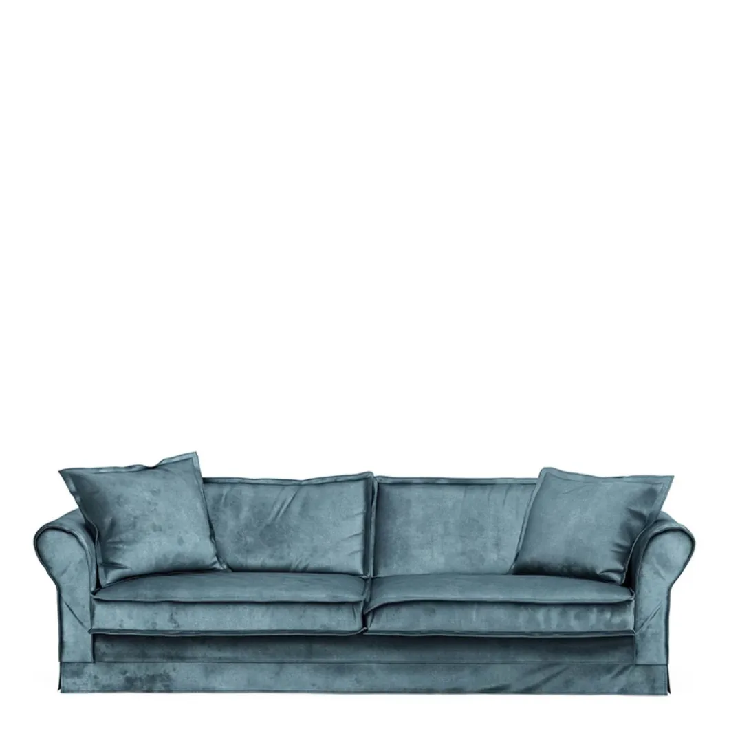 Deze royale bank ziet er door zijn velvet stoffering erg chic uit. Hoe het licht erop valt, bepaalt hoe donker of hoe licht de bank er voor het oog uitziet. Strijk met uw hand over de stof en zichtbare sporen van het zitten verdwijnen als sneeuw voor de zon. Vlekken verwijdert u eenvoudig met een licht vochtige doek. Verkrijgbaar in verschillende kleuren.