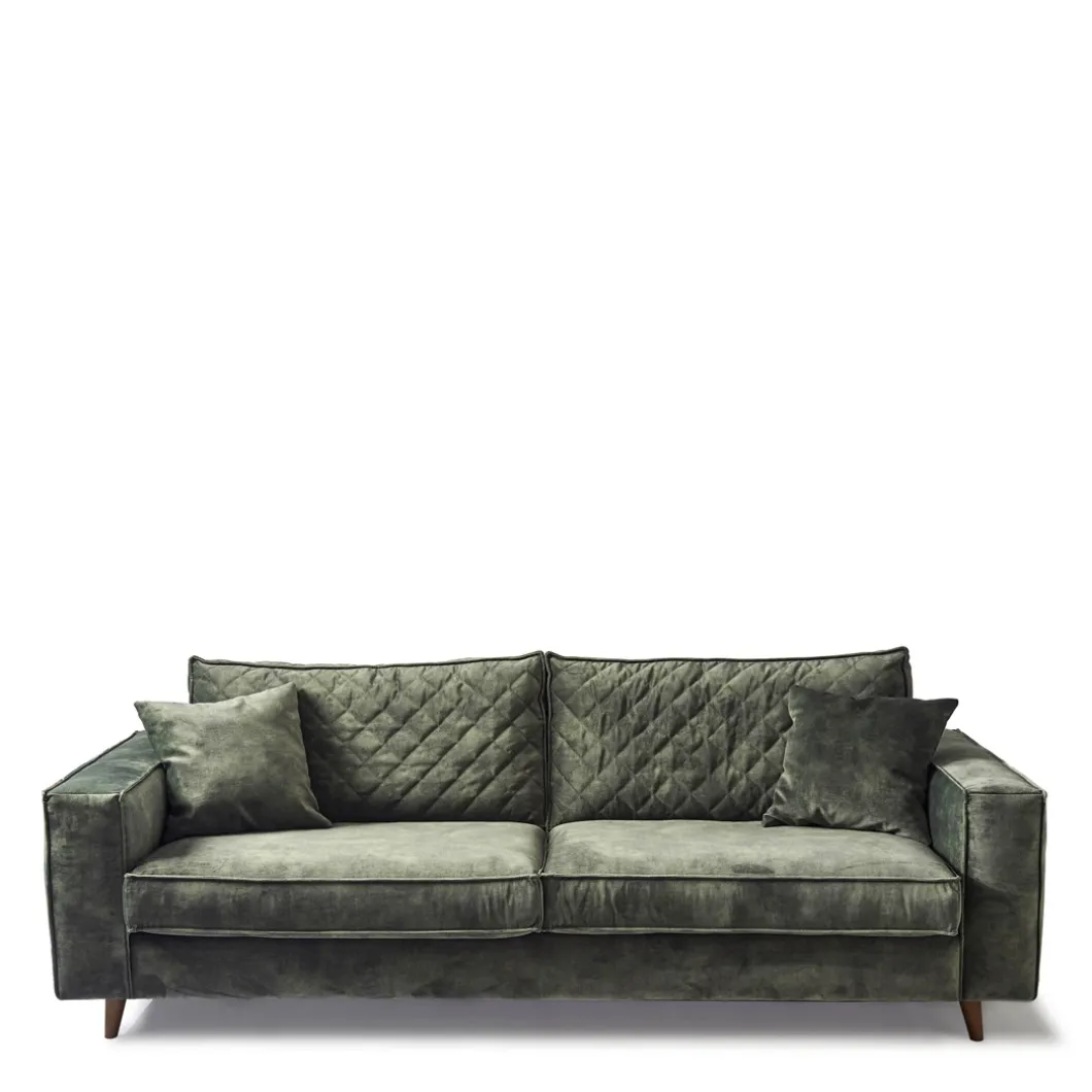 Wie eenmaal is neergestreken op de ‘Kendall’ sofa, die zal niet graag meer omhoog komen, zo prettig en zacht zit deze bank. De bijzondere vering bepaalt de stevigheid van de zitting, het zachte comfort komt van het dikke schuim dat in de kussens zit. Om de sofa af te maken is de hele bank bedekt met zacht velvet.