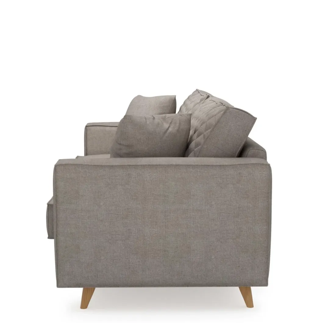 Wie eenmaal is neergestreken op de ‘Kendall’ sofa, die zal niet graag meer omhoog komen, zo prettig en zacht zit deze bank. De bijzondere vering bepaalt de stevigheid van de zitting, het zachte comfort komt van het dikke schuim dat in de kussens zit. Om de sofa af te maken is de hele bank bedekt met een zachte stof.