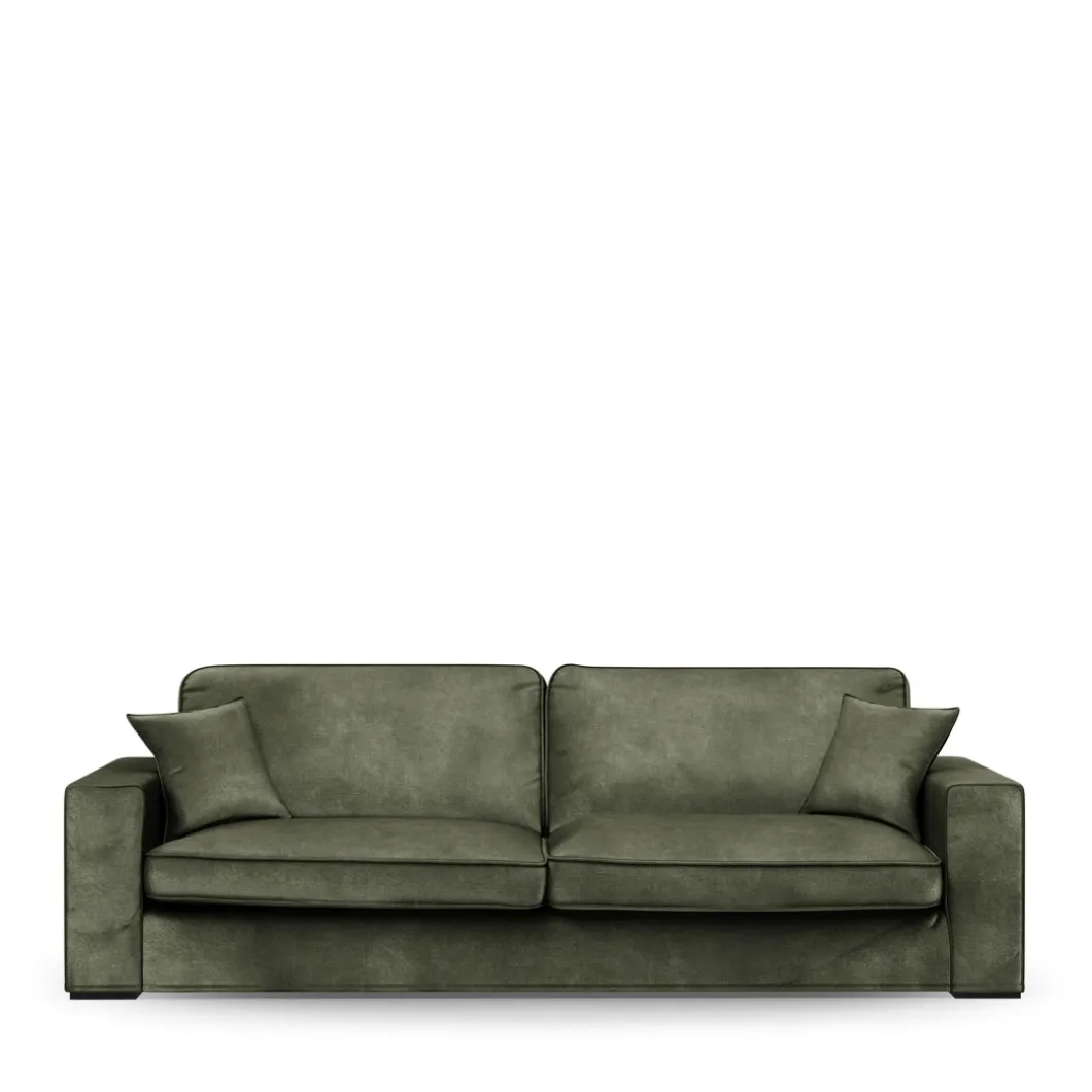 De Selana 3,5-zitter is een bank met twee losse zitkussens en twee hoge rugkussens. De hoogte van de rugkussens maakt dat je heel comfortabel op de bank kunt zitten. De bank wordt standaard geleverd met twee losse sierkussens in de kleur en stoffering van de bank. Verkrijgbaar in verschillende kleuren en stofferingen.