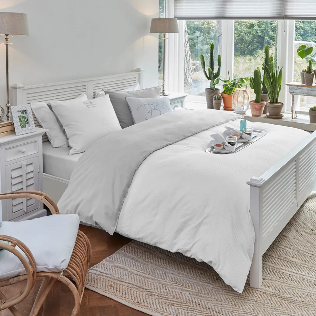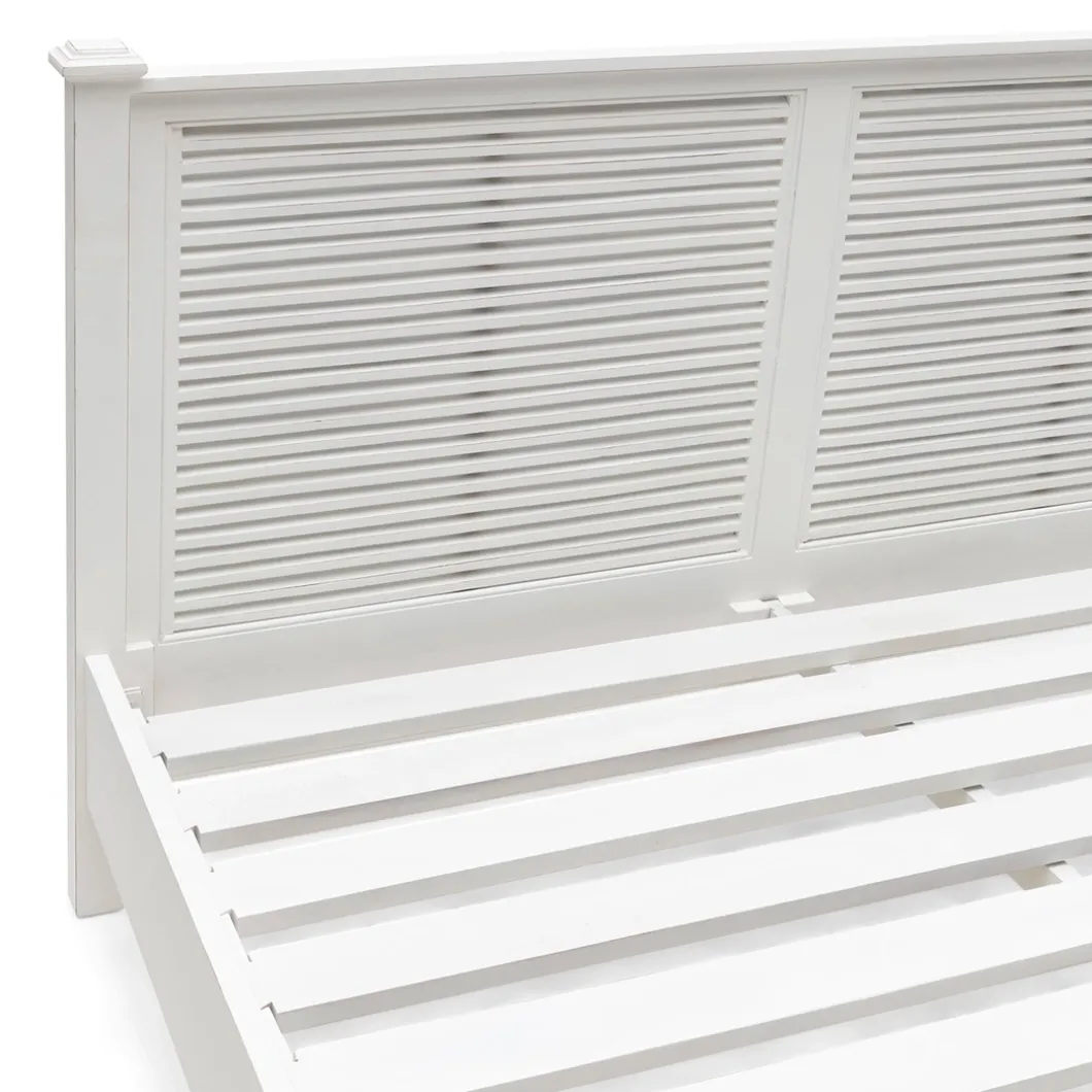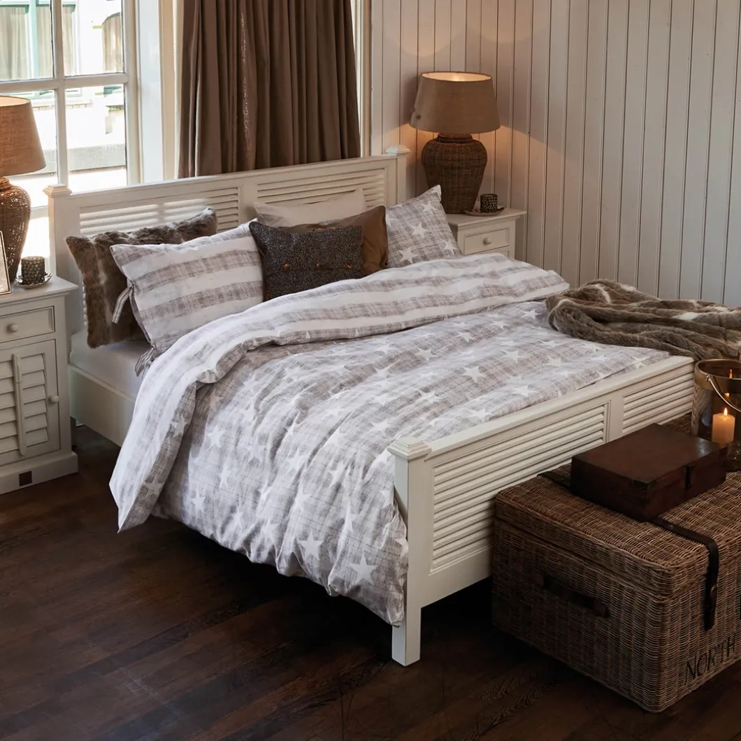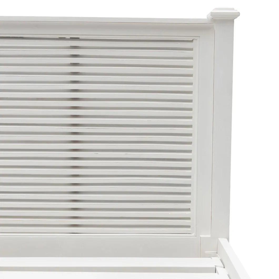 New Orleans is de grootste stad van de Amerikaanse staat Louisiana. De stad ligt aan de oevers van de rivier de Mississippi. Dit fris witte tweepersoons bedframe van acaciahout oogt stoer door de shutters bij het hoofd en voeteneind. In deze serie is ook een eenpersoons bedframe verkrijgbaar.