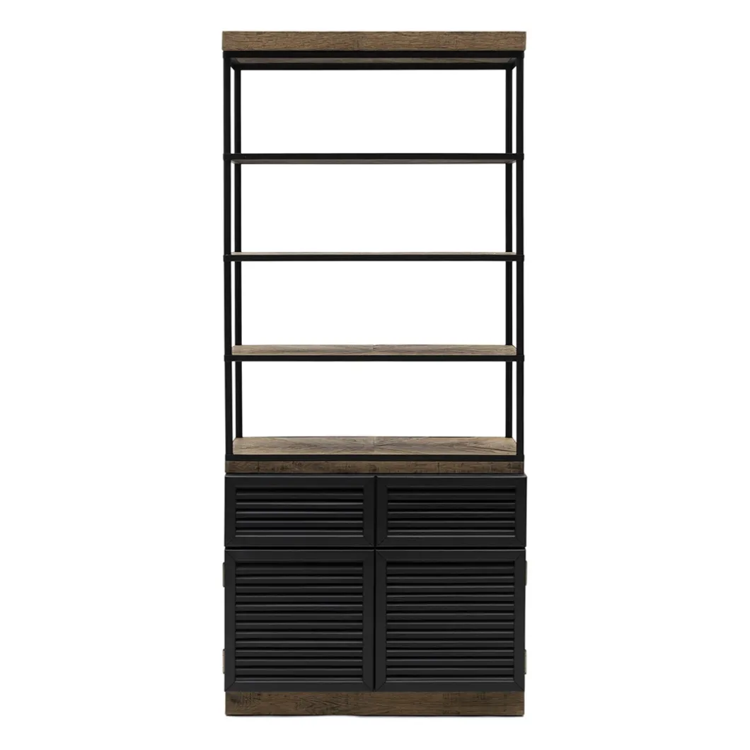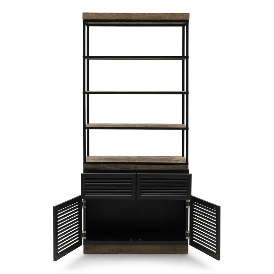 Boekenkast Stanford is net zo statig als zijn naam! Deze kast straalt karakter en stijl uit. Gemaakt van reclaimed eikenhout en populierenhout, met een elegant ijzeren accent. De shutterdeuren voegen een speels element toe aan deze mooie, hoge boekenkast van 100x47x226 cm. De top, het blad en de basis zijn uitgevoerd in verweerd eiken, waardoor deze boekenkast een warme en authentieke uitstraling heeft. Een tijdloos en prachtig meubelstuk.