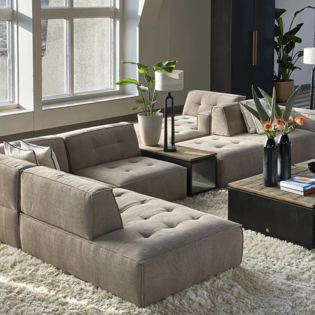 Met de modulaire bankenserie Brandon stel je zelf je ideale bank samen. Houd het klein met één of twee delen of pak uit met een hoekdeel, middenstuk en een hoekdeel met leuning of een lounger. Als bijzonder detail heeft deze bank een leuning die je eenvoudig naar voren en achteren plaatst, voor jouw perfecte zit. Verkrijgbaar in verschillende stoffen en kleuren.