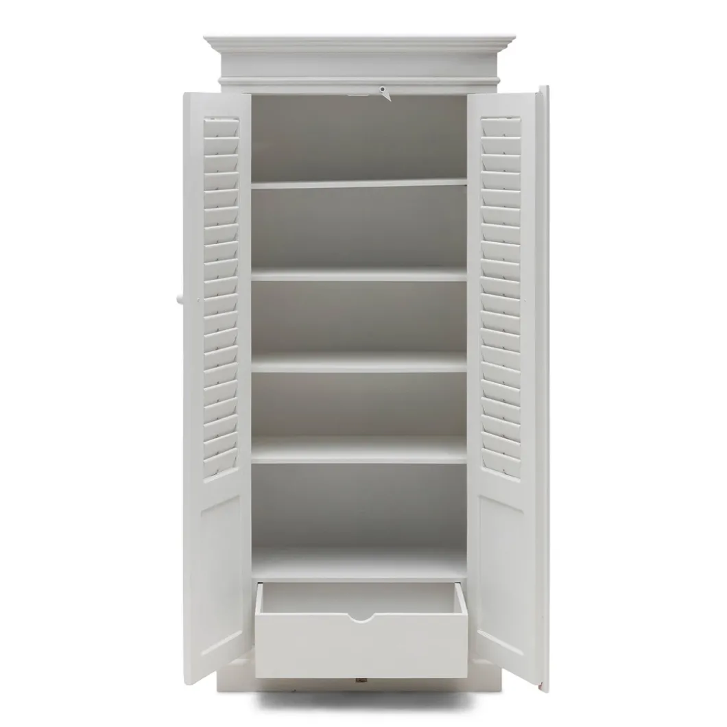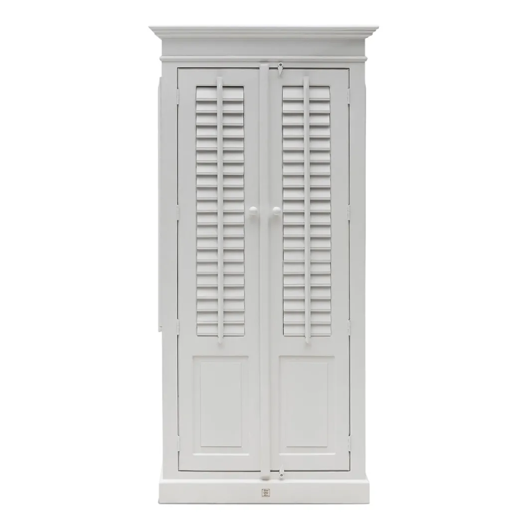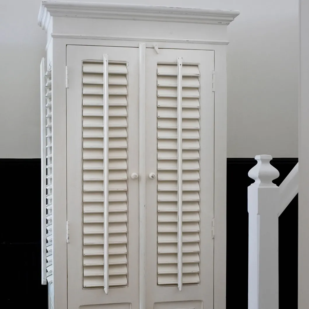 New Orleans is de grootste stad van de Amerikaanse staat Louisiana. De stad ligt aan de oevers van de rivier de Mississippi. Deze fris witte louvrekast van acaciahout is echt een stoere kast met beweegbare shutters, zowel aan de voor- als de zijkant. In de kast vindt u vijf ruime planken en een grote lade.