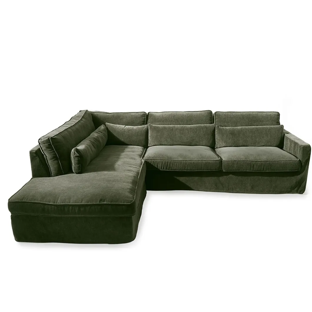 Een uitgebreide bank met chaise longue is zo mogelijk nog comfortabeler dan “alleen maar” een bank. Gestrekt even bijkomen van de vermoeiende dag op het werk of met de familie, heerlijk. Deze robuuste bank met links een chaise longue biedt voldoende plaats voor andere gezinsleden. Deze is verkrijgbaar in verschillende stoffen en kleuren.