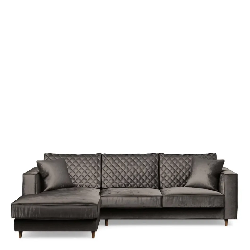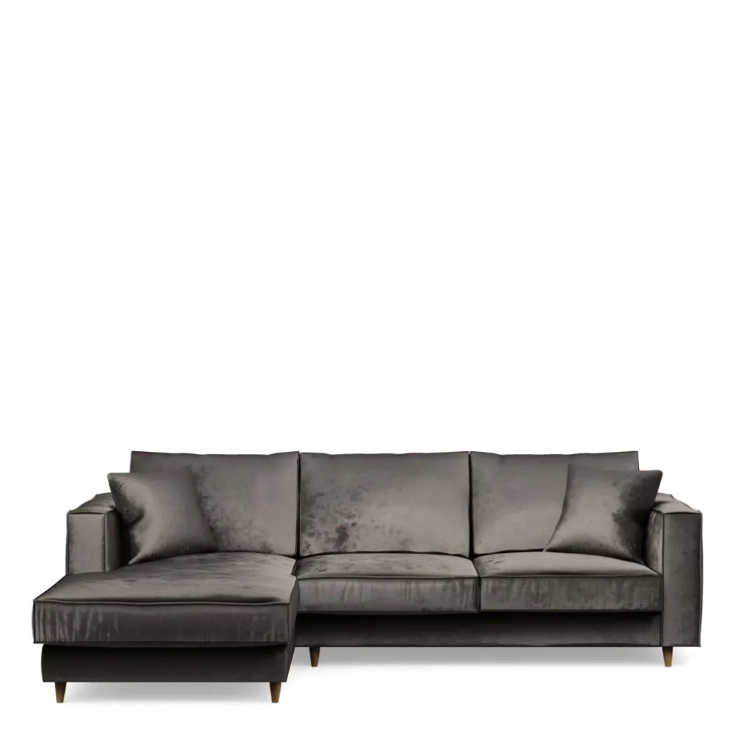 De Kendall-bankenserie is uitgebreid met een nieuw model: de sofa met chaise longue. De bank is lekker breed, het chaise longue-deel zit links, is wel 172 centimeter diep en breed genoeg om samen gestrekt op te zitten. Het geheel is uitgevoerd in velvet. Deze sofa is verkrijgbaar in verschillende maten en uitvoeringen.