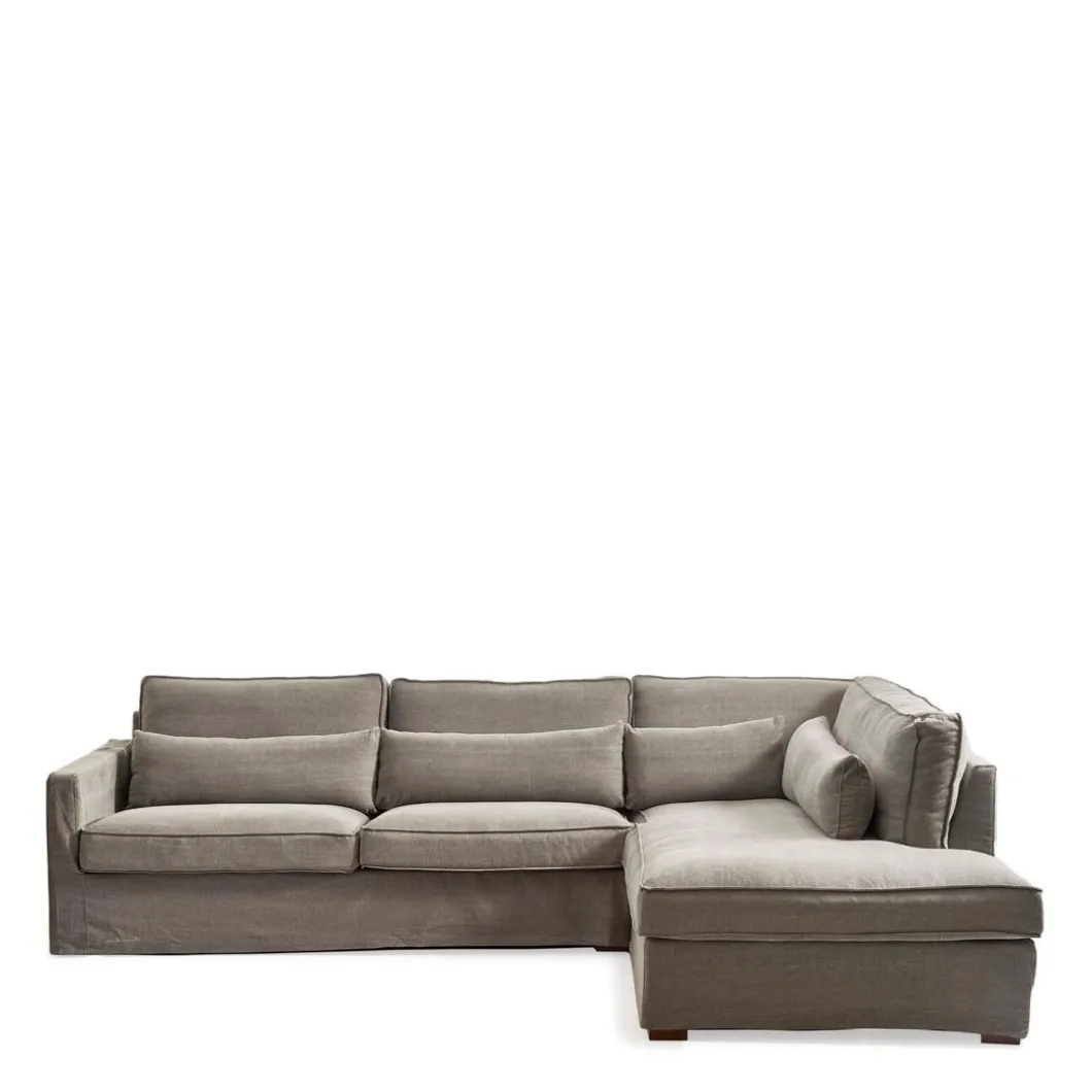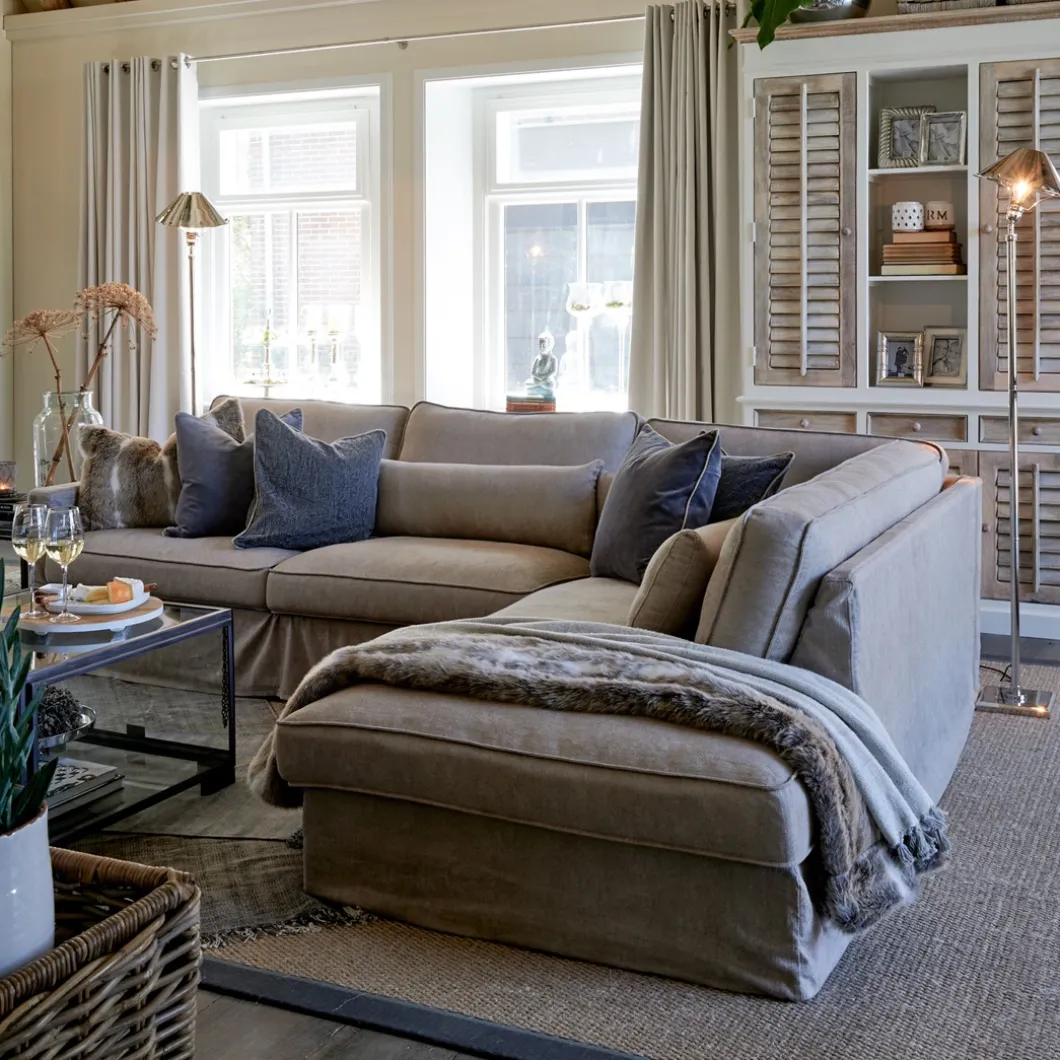 Een uitgebreide bank met chaise longue is zo mogelijk nog comfortabeler dan “alleen maar” een bank. Gestrekt even bijkomen van de vermoeiende dag op het werk of met de familie, heerlijk. Deze robuuste bank met rechts een chaise longue biedt voldoende plaats voor andere gezinsleden. Deze is verkrijgbaar in verschillende stoffen en kleuren.