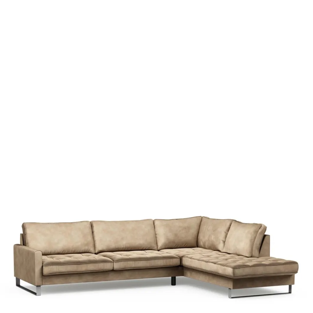Deze bank met rechts een chaise longue wordt de favoriet in huis. Lekker een beetje suf op de bank liggen na een sportwedstrijd of een lange dag. Gestrekt op het zachte fluweel van de bekleding komt een mens dan weer helemaal bij. De bank is gemaakt van beukenhout, ijzer en polyester. Hij heeft een robuust uiterlijk, zit heerlijk en is er in verschillende materialen en kleuren. 295 x 220 x 85 cm groot.