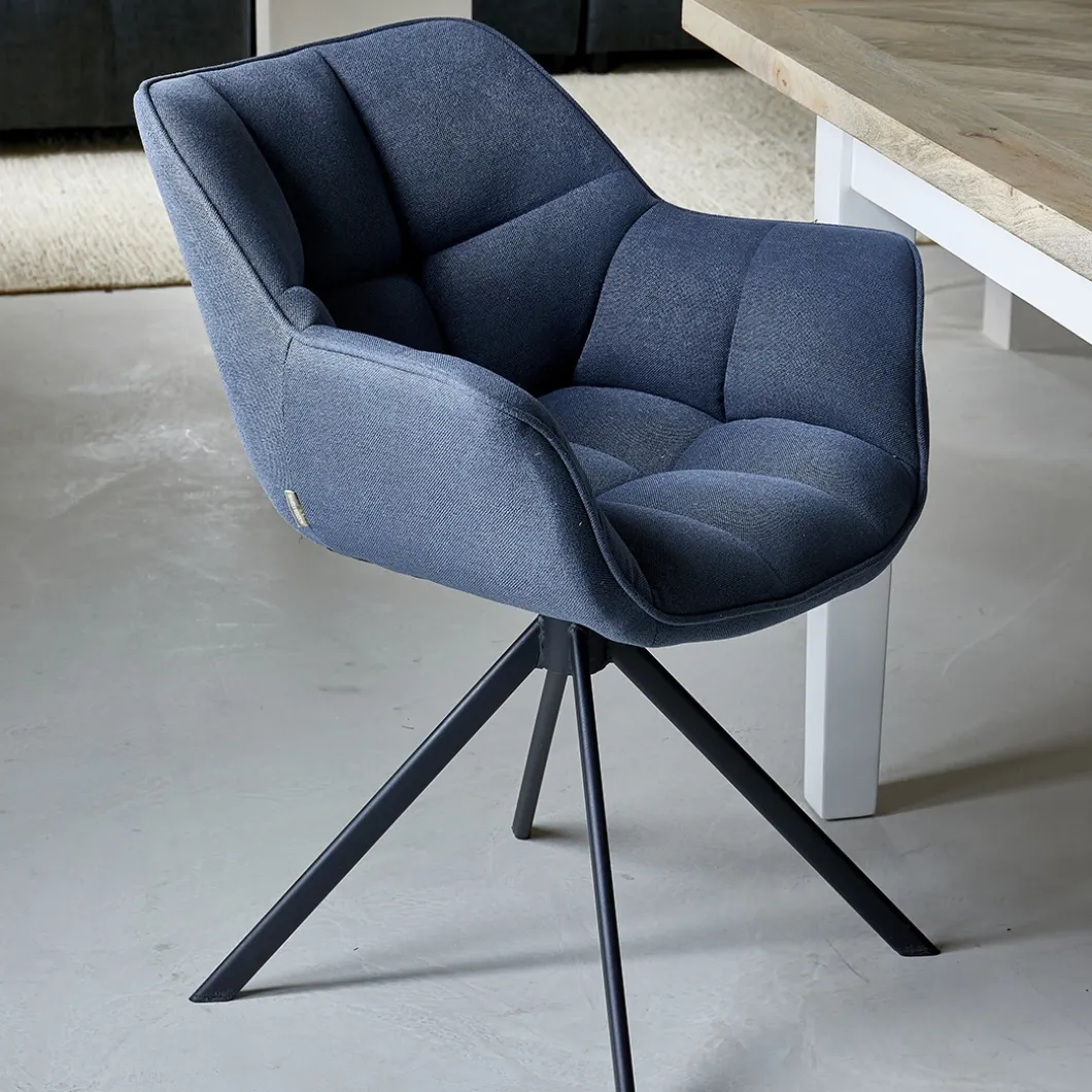 Maak kennis met de nieuwe versie van onze geliefde Carnaby eetkamerstoel. Deze stoel is voorzien van een stevig industrieel onderstel dat moeiteloos een volledige 180 graden kan draaien. Op het moment dat je opstaat, keert de stoel automatisch terug naar zijn oorspronkelijke positie. De vernieuwende uitvoering is bekleed met de elegante Mouline Linnen stof en is beschikbaar in de kleur Sea Blue.
