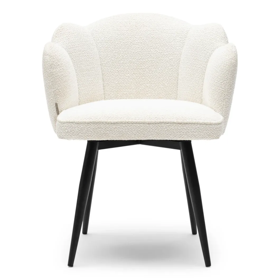 De draaibare Dauphine eetkamerstoel in simply white is een stijlvolle aanvulling aan je eettafel. Gemaakt van zachte peluche boucle stof en voorzien van een unieke bloemvormige rugleuning, is deze stoel een ware eyecatcher. De draaibare poot biedt extra gemak, terwijl de stevige constructie zorgt voor langdurig comfort. Met afmetingen van 66x68x88 cm past de Dauphine perfect bij je eettafel, en voegt hij een vleugje moderne luxe toe aan je interieur. Maak je eetruimte compleet met deze elegante stoel die functionaliteit en design moeiteloos combineert.