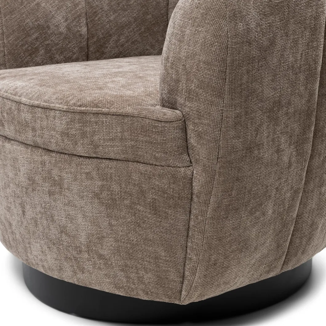 - De Countesse fauteuil is in een nieuw jasje gestoken met een nieuwe hoogwaardige stof die luxe uitstraalt. De ronde rugleuning loopt naadloos over in de armleuningen, terwijl de verticaal gestikte lijnen een elegante bolling creëren, waardoor er stijlvolle banen in de rugleuning ontstaan. Het moderne lijnwerk accentueert de esthetiek van de stoel. Als kers op de taart heeft deze fauteuil een ronde, draaiende poot van rubberhout die tot de grond doorloopt, waardoor je de stoel 360 graden kunt draaien.