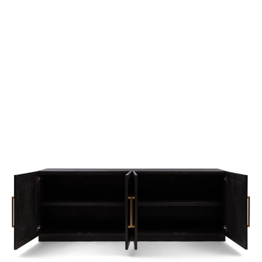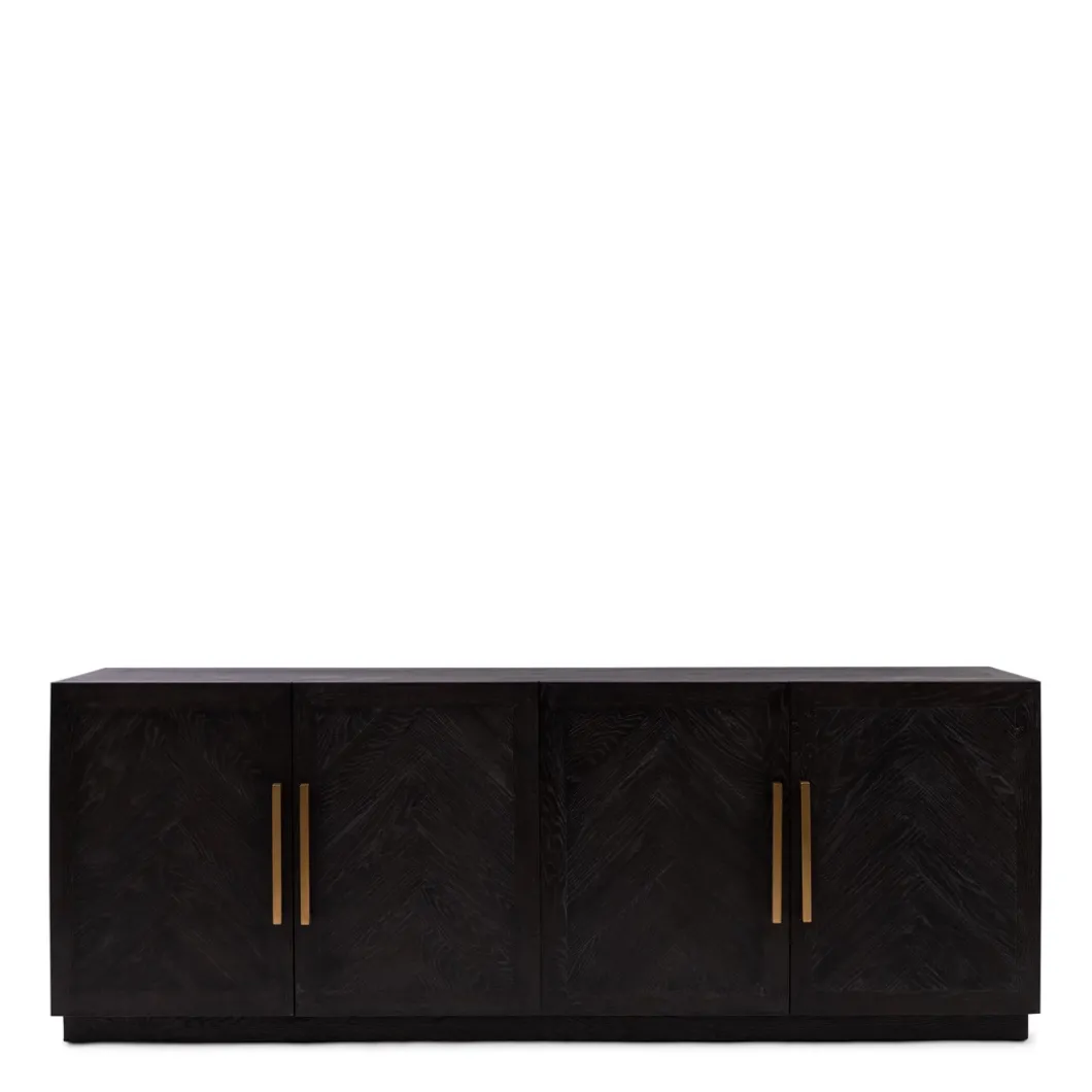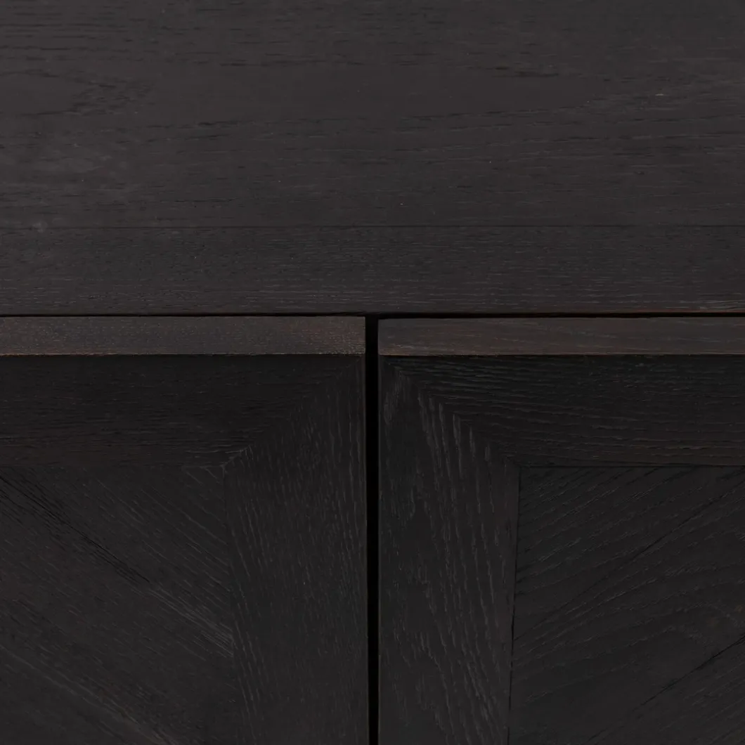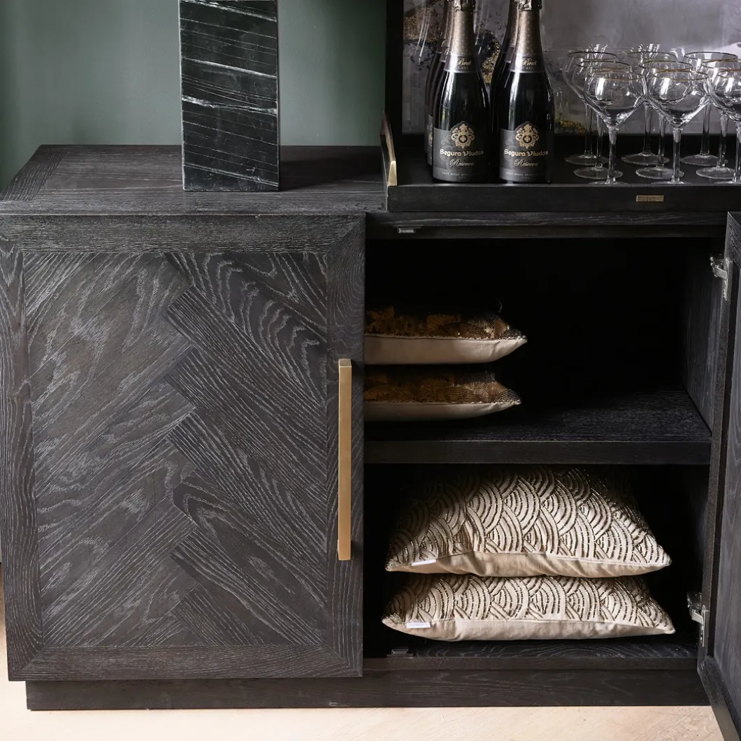 In de 5th Avenue-serie is dit een royaal dressoir van wel 2.30 meter breed. Het hout van deze blikvanger is in een visgraatpatroon gelegd en heeft een donkere coating gekregen, waar de houtnerf doorheen schemert. De vier deuren beschikken over een softclose-mechanisme. Tip: gebruik voor het onderhoud de Premium Wood Care Kit..