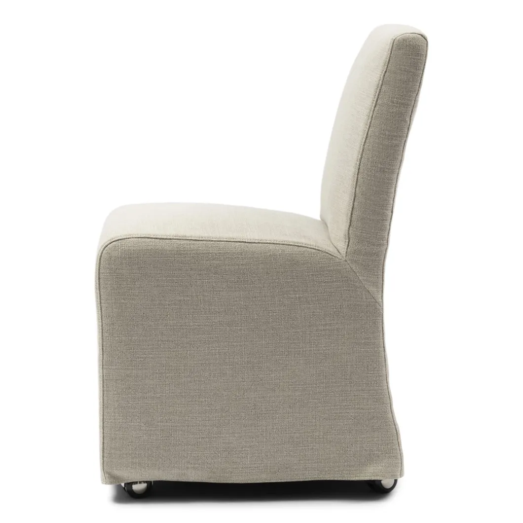 De Firenze Eetkamerstoel, gehuld in de tijdloze elegantie van de kleur fabulous flax en voorzien van een bijpassende losse hoes, vormt de ideale aanvulling op je eetkamer. Deze stijlvolle stoel combineert functionaliteit met esthetiek, waarbij comfortabel zitten gepaard gaat met een verfijnde uitstraling. Dankzij de handige wieltjes onder de stoel verplaats je hem eenvoudig, waardoor flexibiliteit en gemak de kern vormen van jouw interieur.