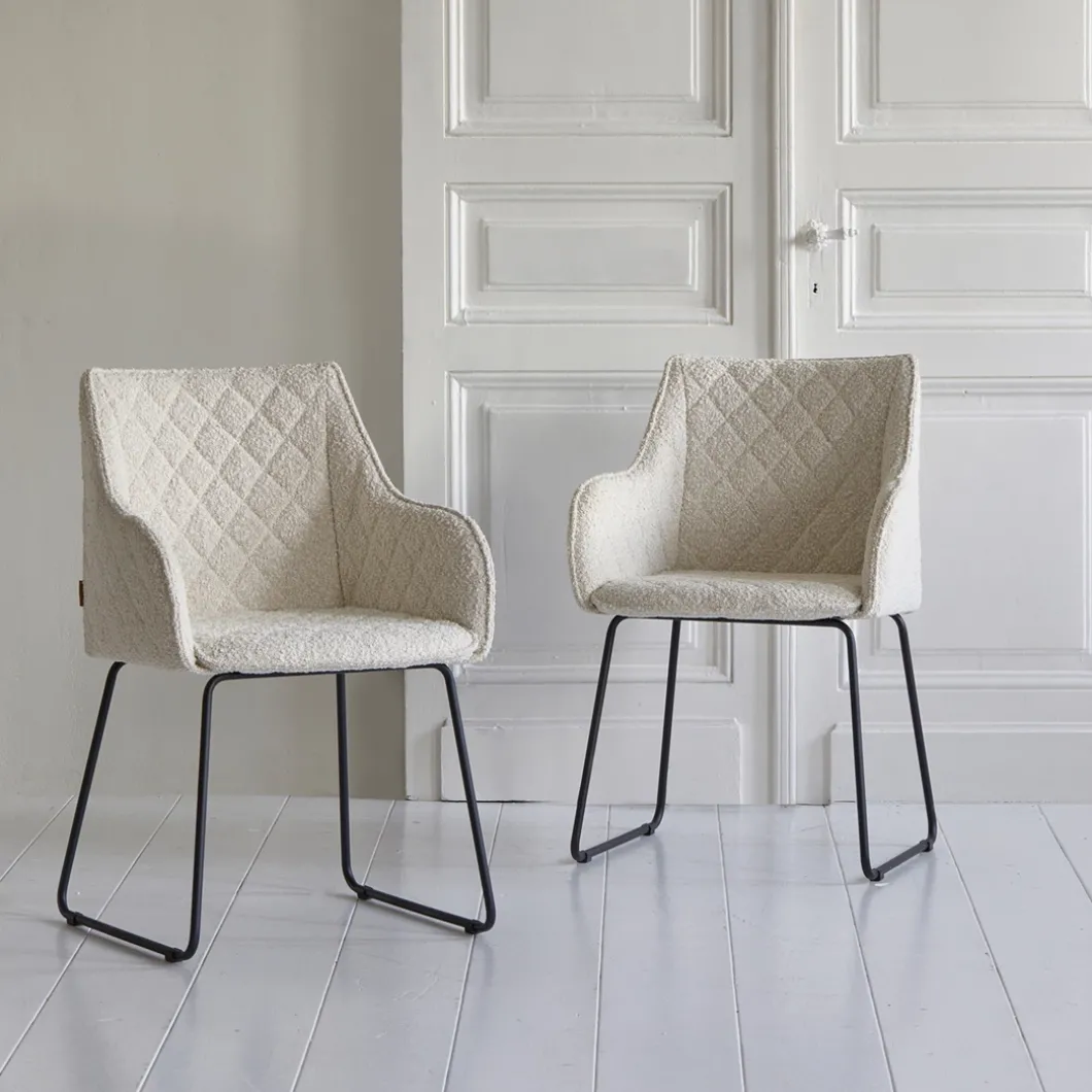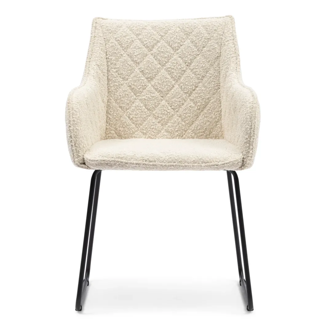 De Frisco Drive-eetkamerstoel is een stoel met een stevige zit en een degelijk onderstel van ijzer. In de stoel is een ruitpatroon gestikt. De eetkamerstoel heeft een klassiek uiterlijk en past hierdoor in ieder interieur. Deze stoel met armleuningen is verkrijgbaar in verschillende kleuren en stofferingen.
