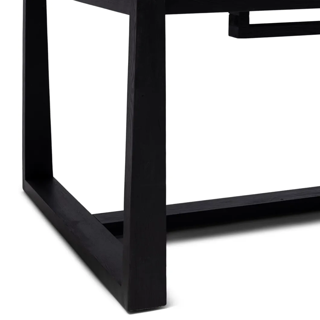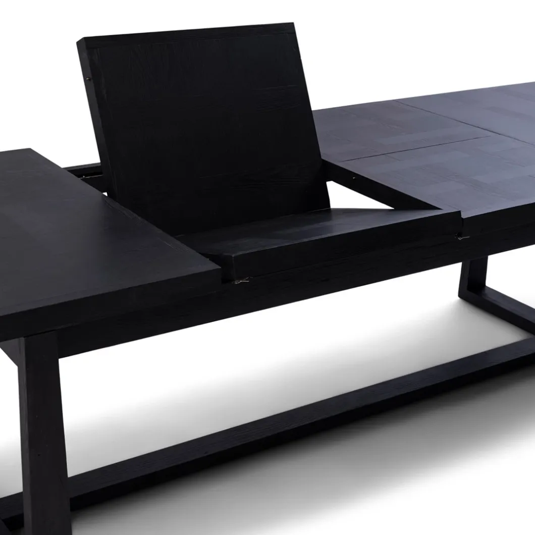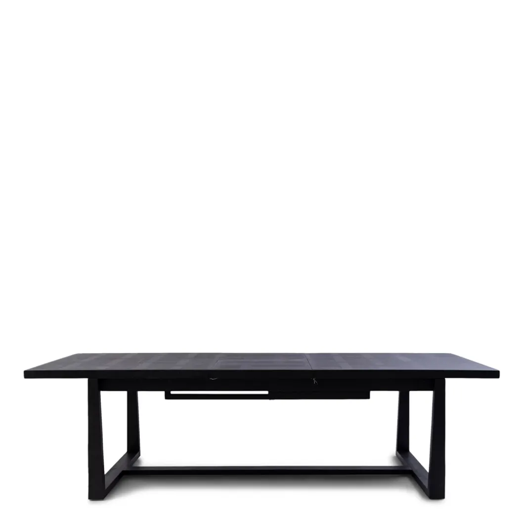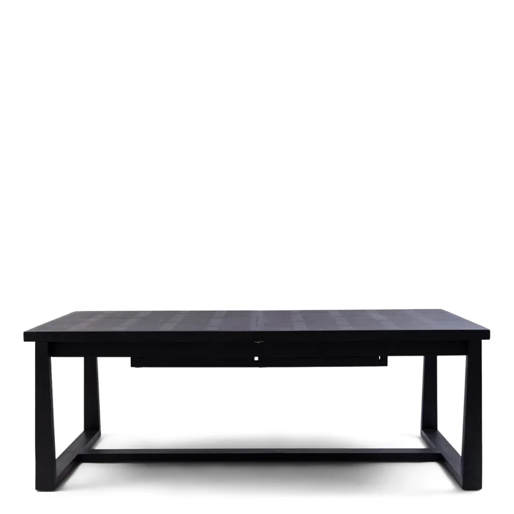 Deze eettafel uit de Colombe-serie is eenvoudig uit te breiden. Zo heb je in een oogwenk een tafel van meer dan drie meter lang. Het uitbreiden gebeurt door één of twee delen van 60 cm breed met een butterfly-mechanisme onder de tafel vandaan te schuiven. De tafel is gemaakt van een combinatie van donker essenhout en gerecycled hardhout.