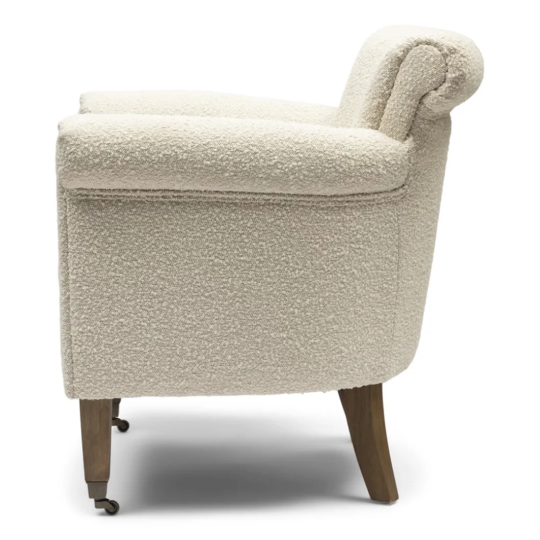 Dompel jezelf onder in pure luxe met de charmante Paramount Armchair, White Sand, in Bouclé stof. Dit design combineert de on-trend stof met een heerlijk comfortabel zitcomfort. Dit ontwerp is gerelaunched ter ere van het 75 jarig bestaan van RM! De voorpoten zijn voorzien van wieltjes, wat deze tijdloze armchair qua look juist compleet maakt. Met een afmeting van 79x79x82 cm is deze zetel perfect voor zowel kleinere als grotere ruimtes.