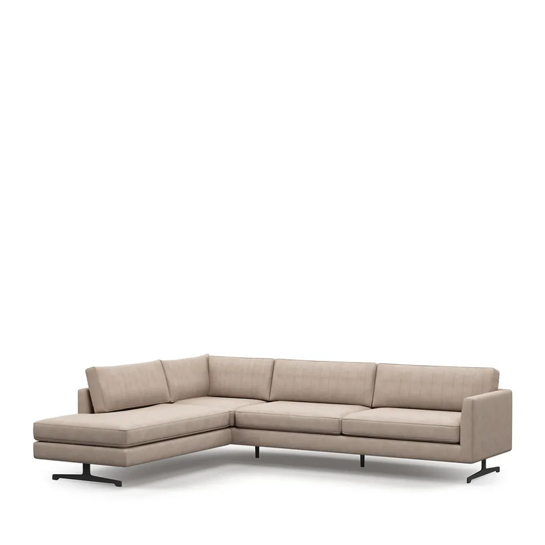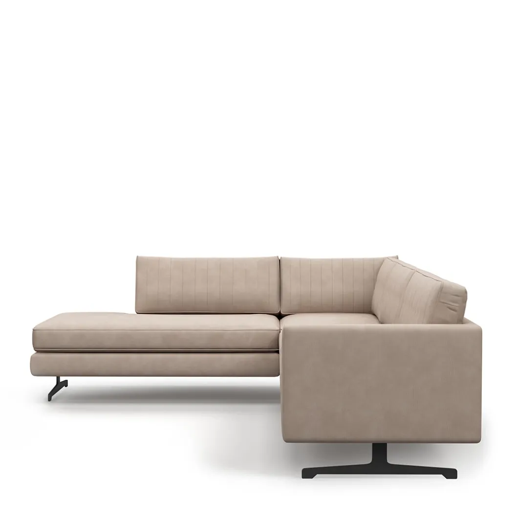 De Camille Corner Sofa Left is een hoekbank met een luxe uitstraling die bestaat uit een breed zitgedeelte en een chaise longue om ontspannen in onderuit te zakken. Het draaibare rugkussen heeft een egale zijde en een zijde met verticale stiksels. De Camille-hoekbank is verkrijgbaar in verschillende kleuren en stofferingen en naar wens met een hoek aan de rechterzijde.