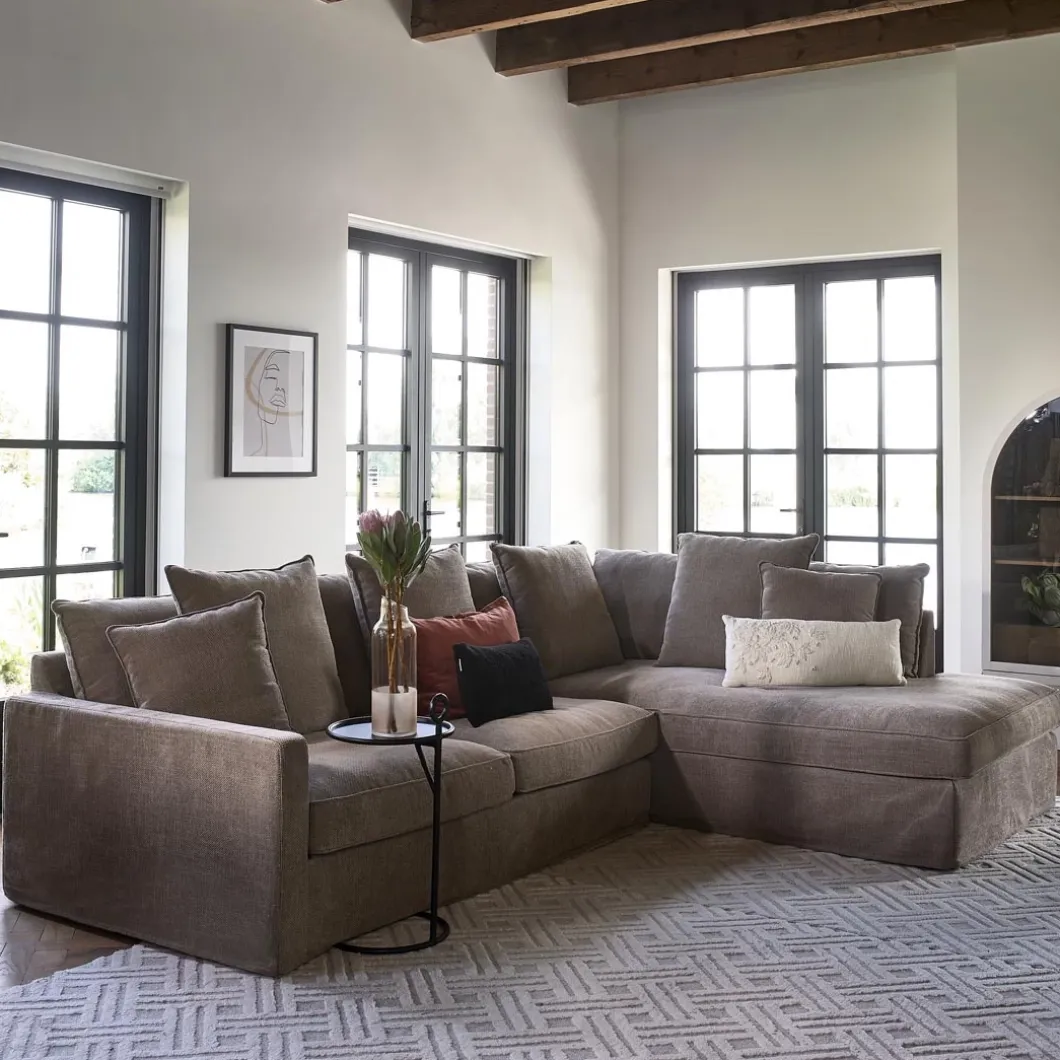 De Lennox Corner Sofa is een echt eyecatcher in je interieur. Een robuuste hoekbank is en blijft een meubel waar de gezelligheid er al is voor je gaat zitten. Deze hoekbank heeft gestikte randen aan de zitkussens en een flink aantal losse kussens.
