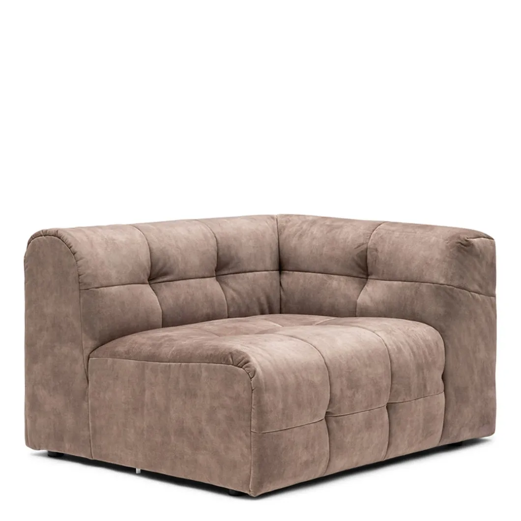 Deze rechterhoek met brede armleuning van modulaire bank The Jones combineer je eenvoudig met bijvoorbeeld een middendeel, chaise longue of hoekdeel. De bank heeft een wat lagere zit en een gecapitonneerd uiterlijk, maar dan zonder knoop. Ook het type stoffering en kleur kies je zelf. Zo creëer je in een handomdraai jouw ideale bank.