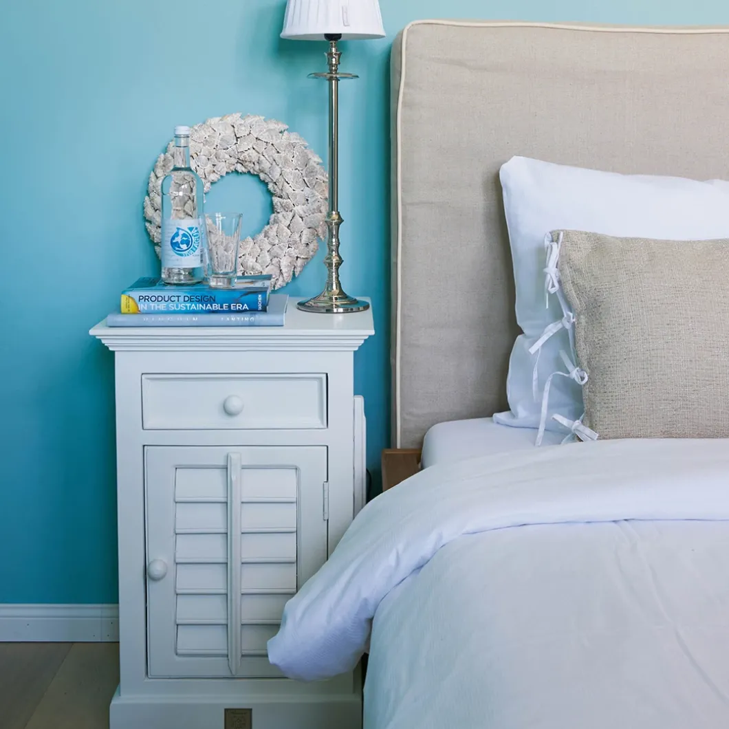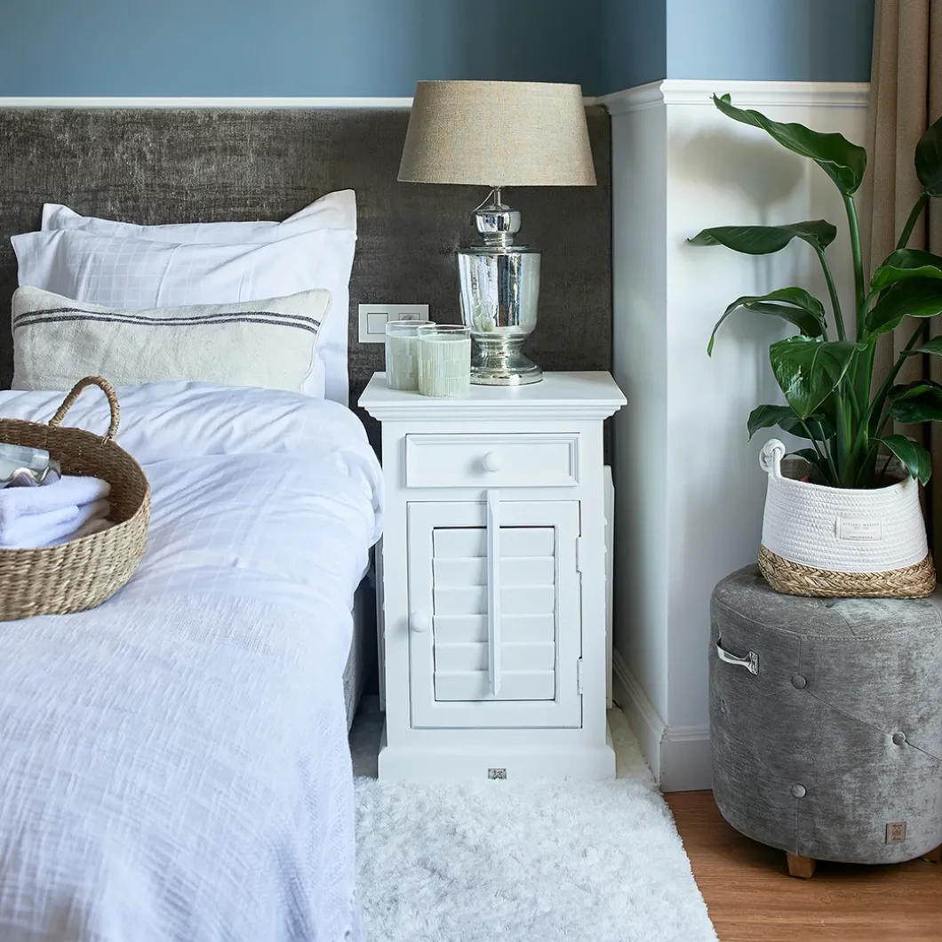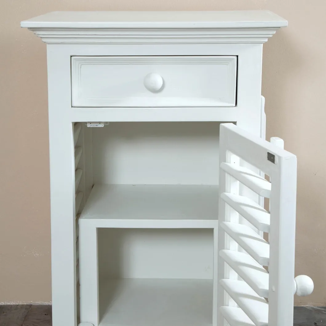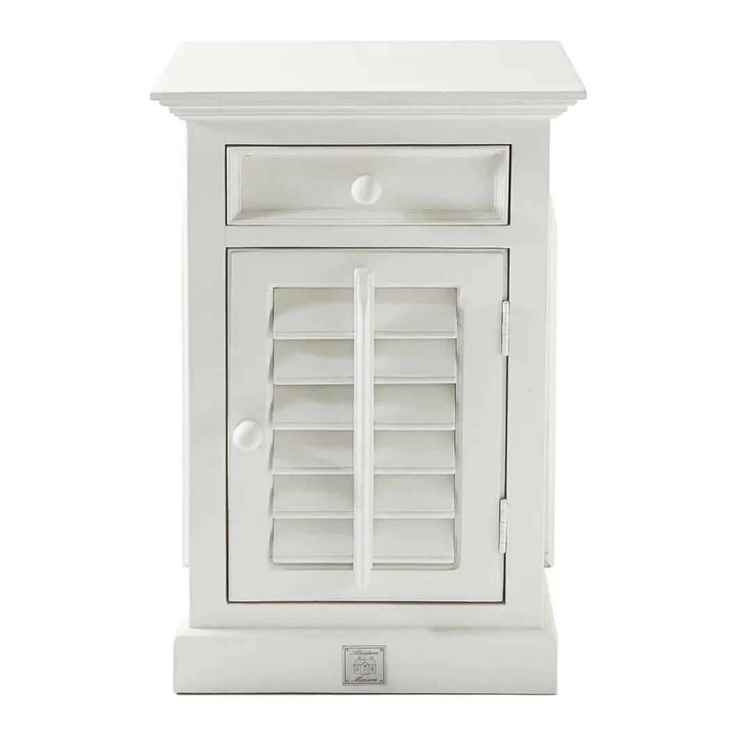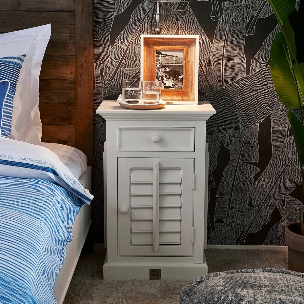 New Orleans is de grootste stad van de Amerikaanse staat Louisiana. De stad ligt aan de oevers van de rivier de Mississippi. Dit nachtkastje van acaciahout is voorzien van shutters en bestemd voor aan de rechterkant van het bed.