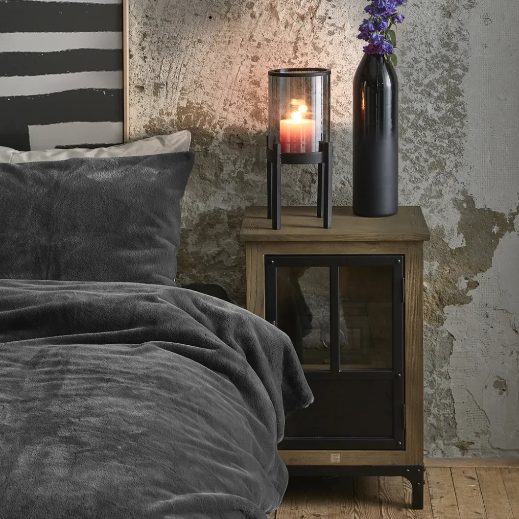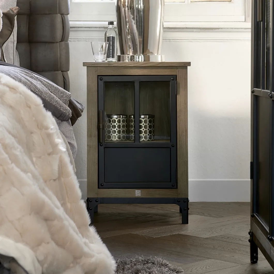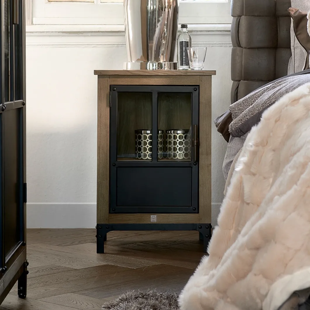 De nachtkastjes uit de Hoxton-serie zijn verkrijgbaar in zowel een linker- als een rechteruitvoering en het verschil heeft te maken met de positie van de handgreep. De kastjes zijn net als de overige items uit de Hoxton-serie gemaakt van gerecycled essenhout, zwartgekleurd ijzer en glazen panelen.