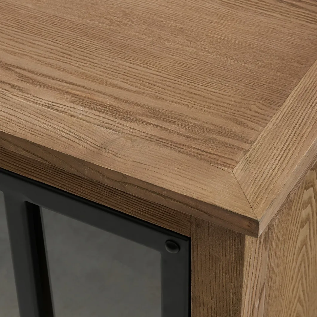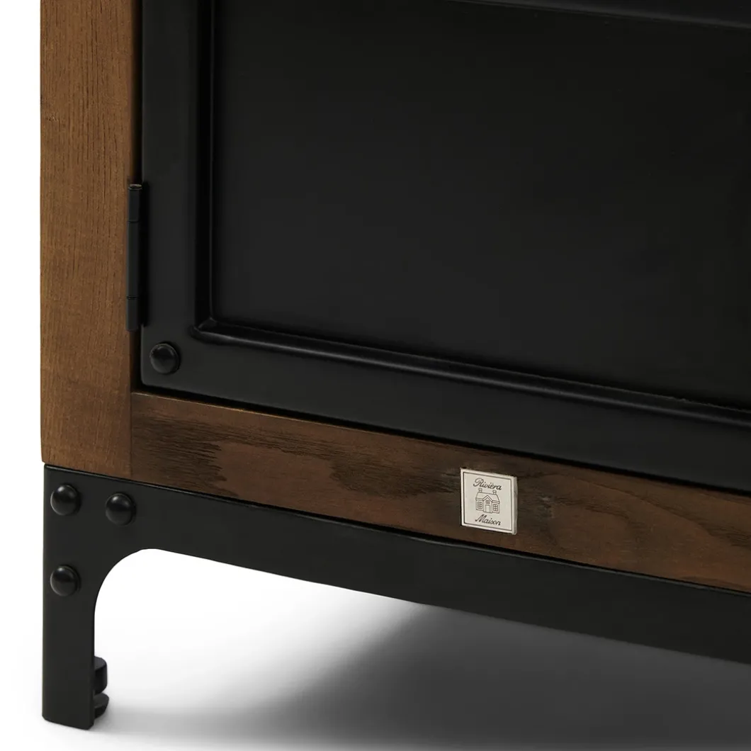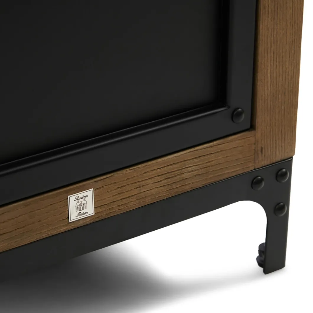 De nachtkastjes uit de Hoxton-serie zijn verkrijgbaar in zowel een linker- als een rechteruitvoering en het verschil heeft te maken met de positie van de handgreep. De kastjes zijn net als de overige items uit de Hoxton-serie gemaakt van gerecycled essenhout, zwartgekleurd ijzer en glazen panelen.