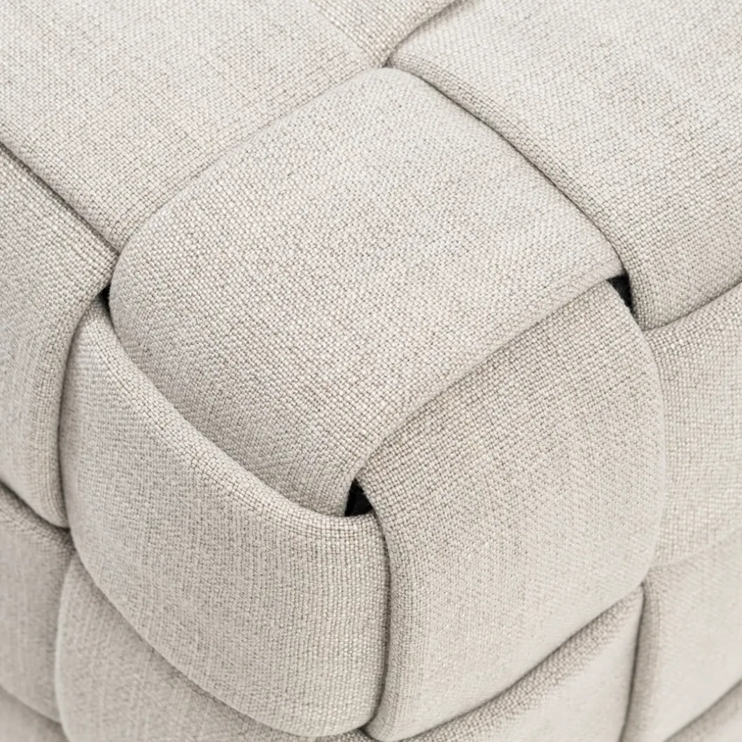 RM heeft ronde poefs, maar ook veel vierkante. Kies wat bij jouw smaak en interieur past. Deze vierkante poef heeft een handgevlochten bekleding van fijne Mouliné Linen, in de kleur Fabulous Flax. Een stevig houten onderstel van dennenhout garandeert jarenlang plezier.