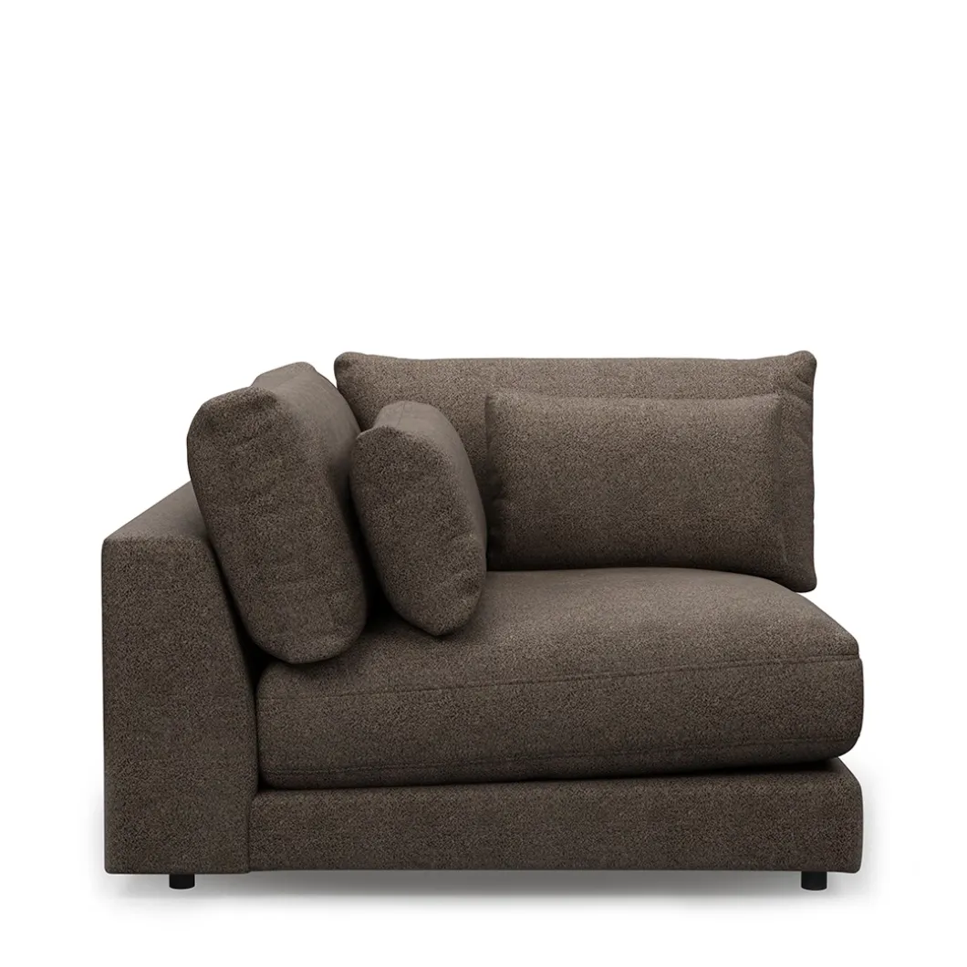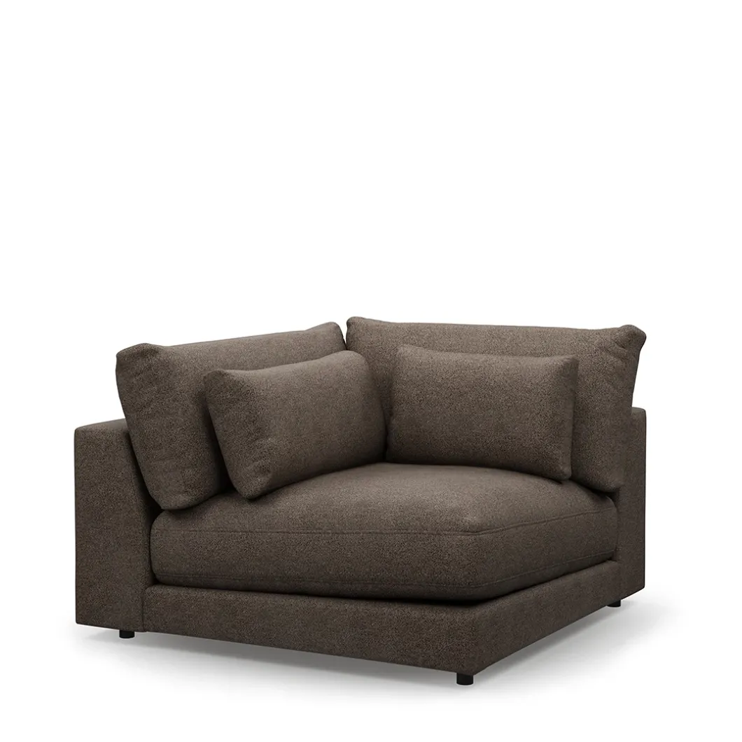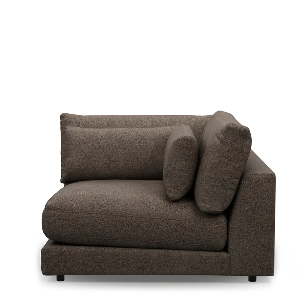 Maak kennis met de modulaire bankenserie Stephen. Dit is het hoekdeel met aan beide zijden een hoge rug. Hierdoor is hij ook perfect als losse loungestoel in het interieur te plaatsen. De bank heeft een lage, diepe zit en komt met extra losse kussens.