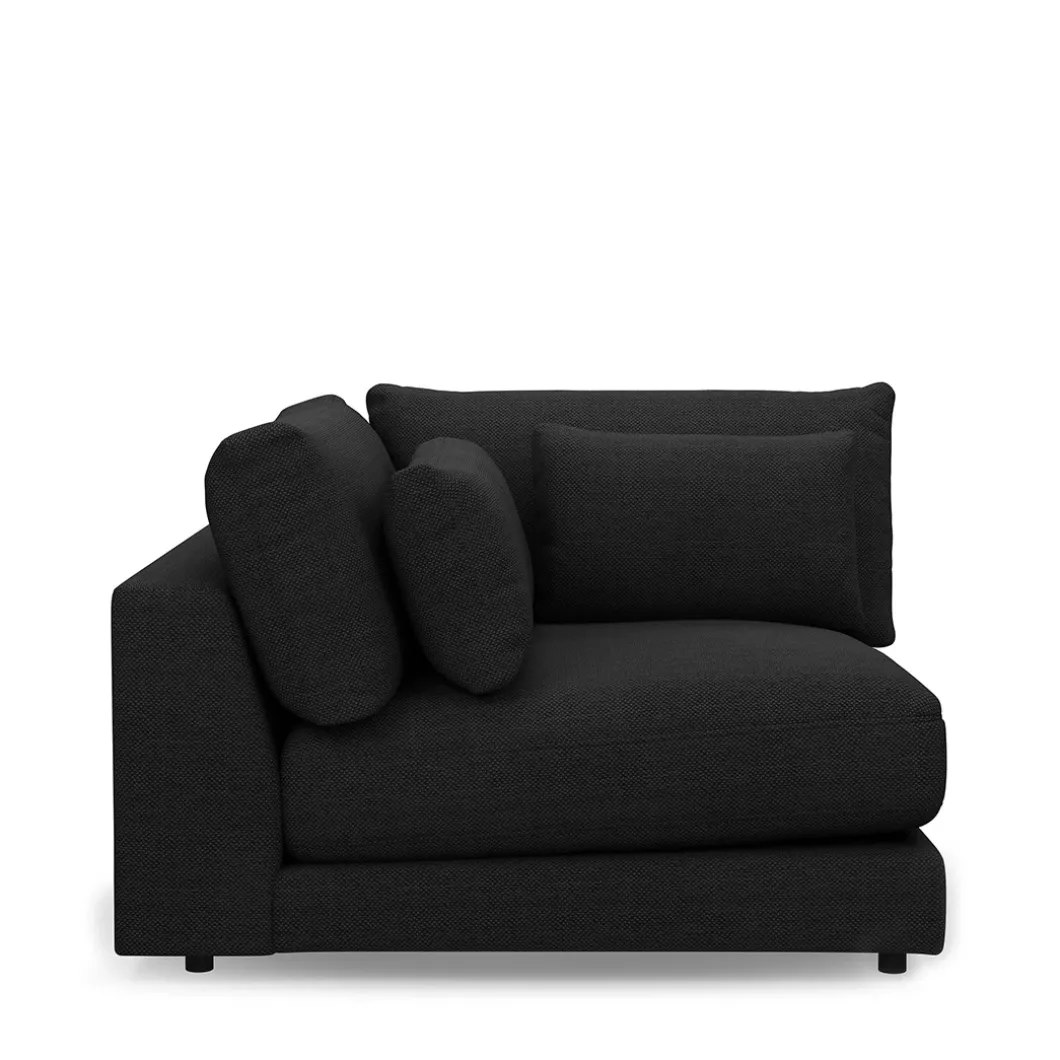 Maak kennis met de modulaire bankenserie Stephen. Dit is het hoekdeel met aan beide zijden een hoge rug. Hierdoor is hij ook perfect als losse loungestoel in het interieur te plaatsen. De bank heeft een lage, diepe zit en komt met extra losse kussens.