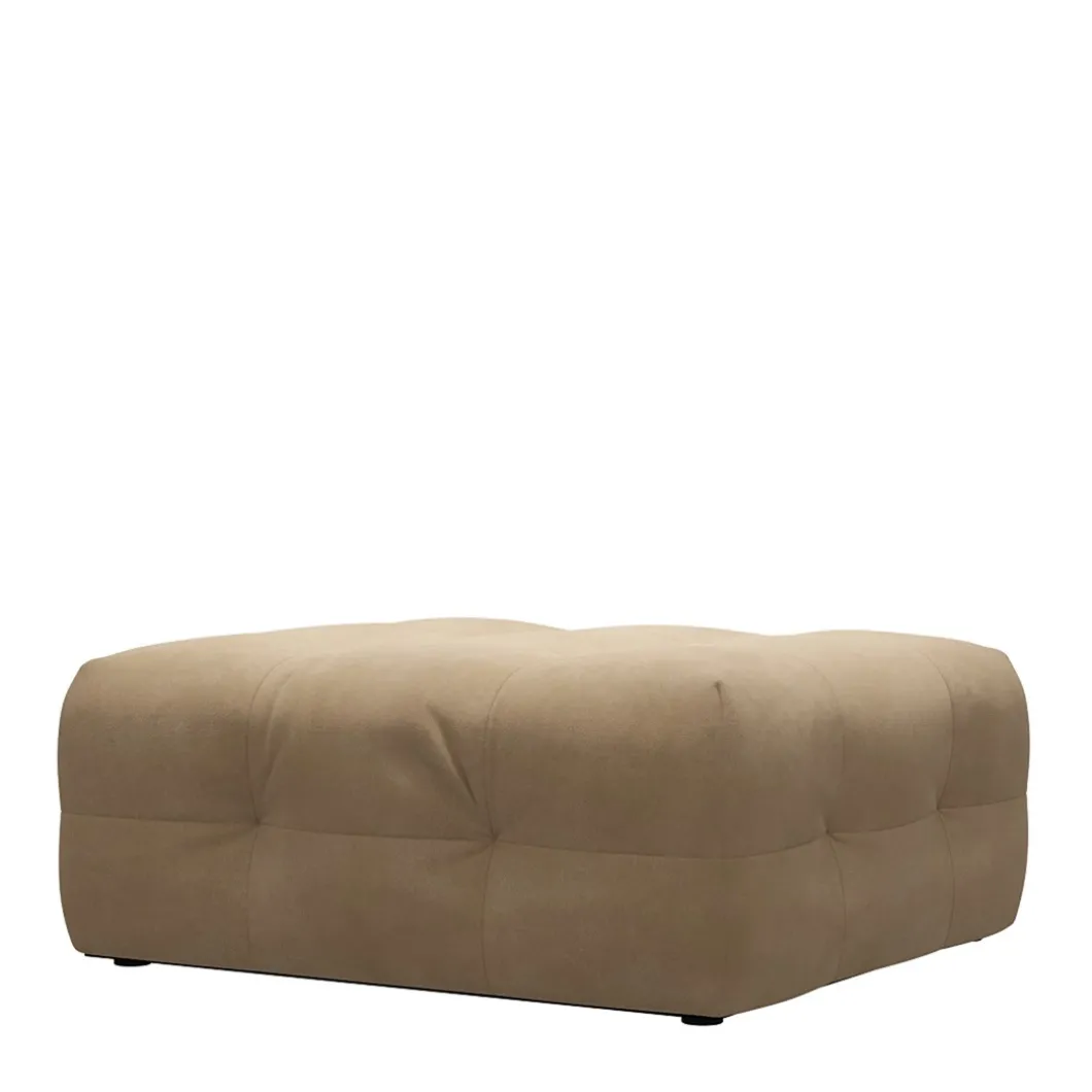 Dit is de voetenbank die hoort bij modulaire bank The Jones. Een elementenbank met een beetje een retrolook. Dit komt door de gecapitonneerde bekleding, waarbij de kenmerkende knopen ontbreken. Met deze hocker tegen de bank aan, creëer je een relaxte zet, maar hij kan ook prima los in de kamer worden geplaatst.