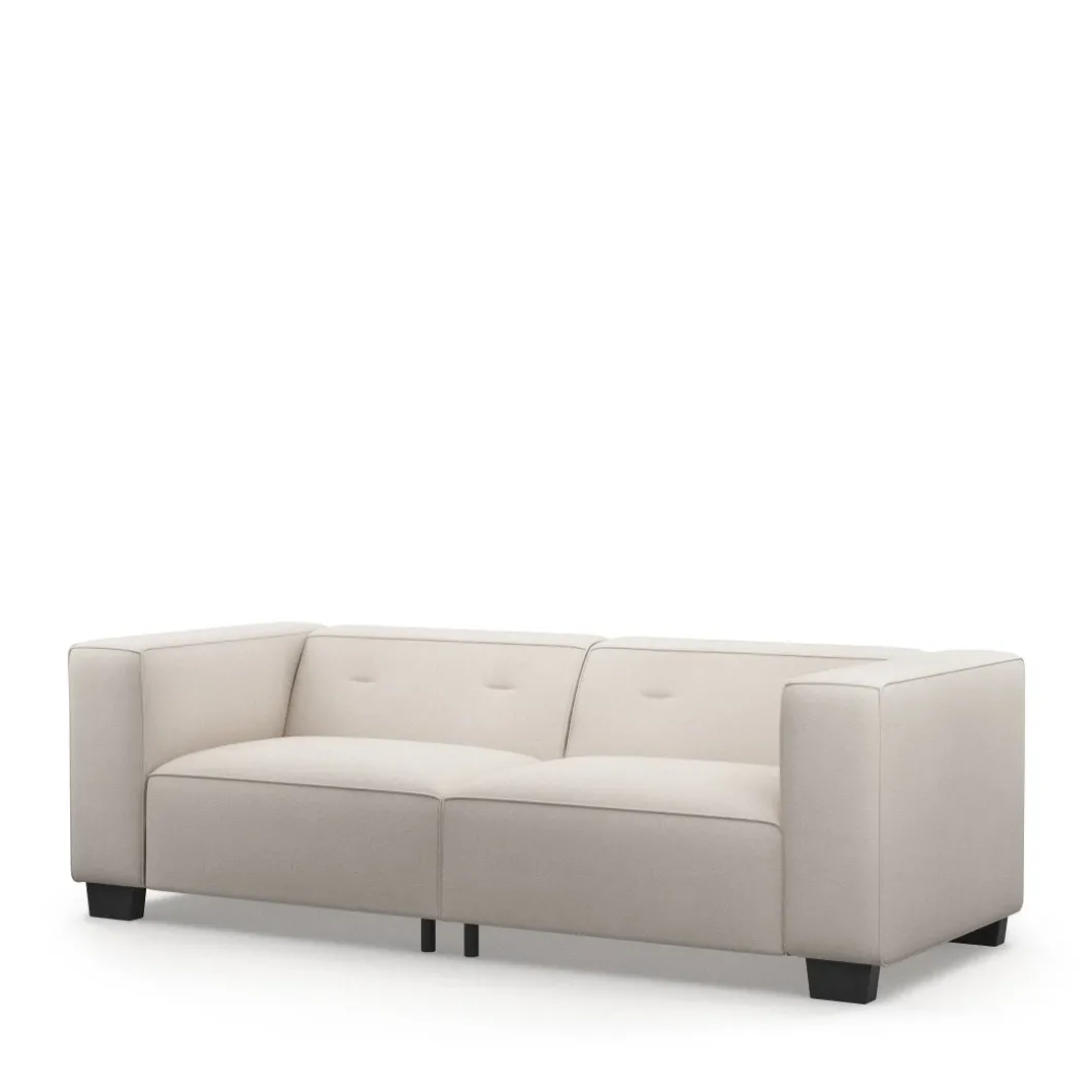 De Hampton Heights Sofa is terug van weggeweest! De 3,5-zitsbank heeft een strakke vormgeving met armleuningen die net zo hoog zijn als de rugleuning. De zittingen en armleuningen zijn gecapitonneerd. Onder de bank staan stevige poten van beukenhout. De ruime sofa is verkrijgbaar in vele verschillende materialen en kleuren.
