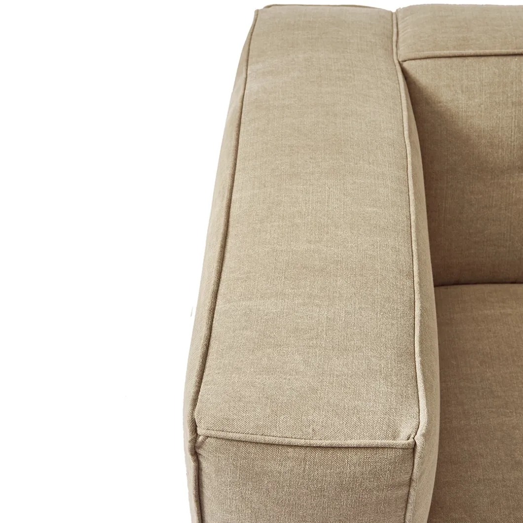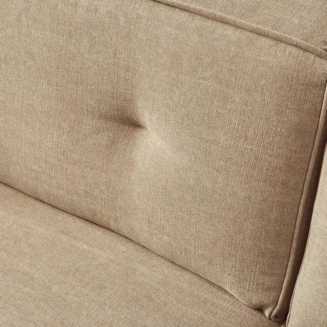 De Hampton Heights Sofa is terug van weggeweest! De 3,5-zitsbank heeft een strakke vormgeving met armleuningen die net zo hoog zijn als de rugleuning. De zittingen en armleuningen zijn gecapitonneerd. Onder de bank staan stevige poten van beukenhout. De ruime sofa is verkrijgbaar in vele verschillende materialen en kleuren.