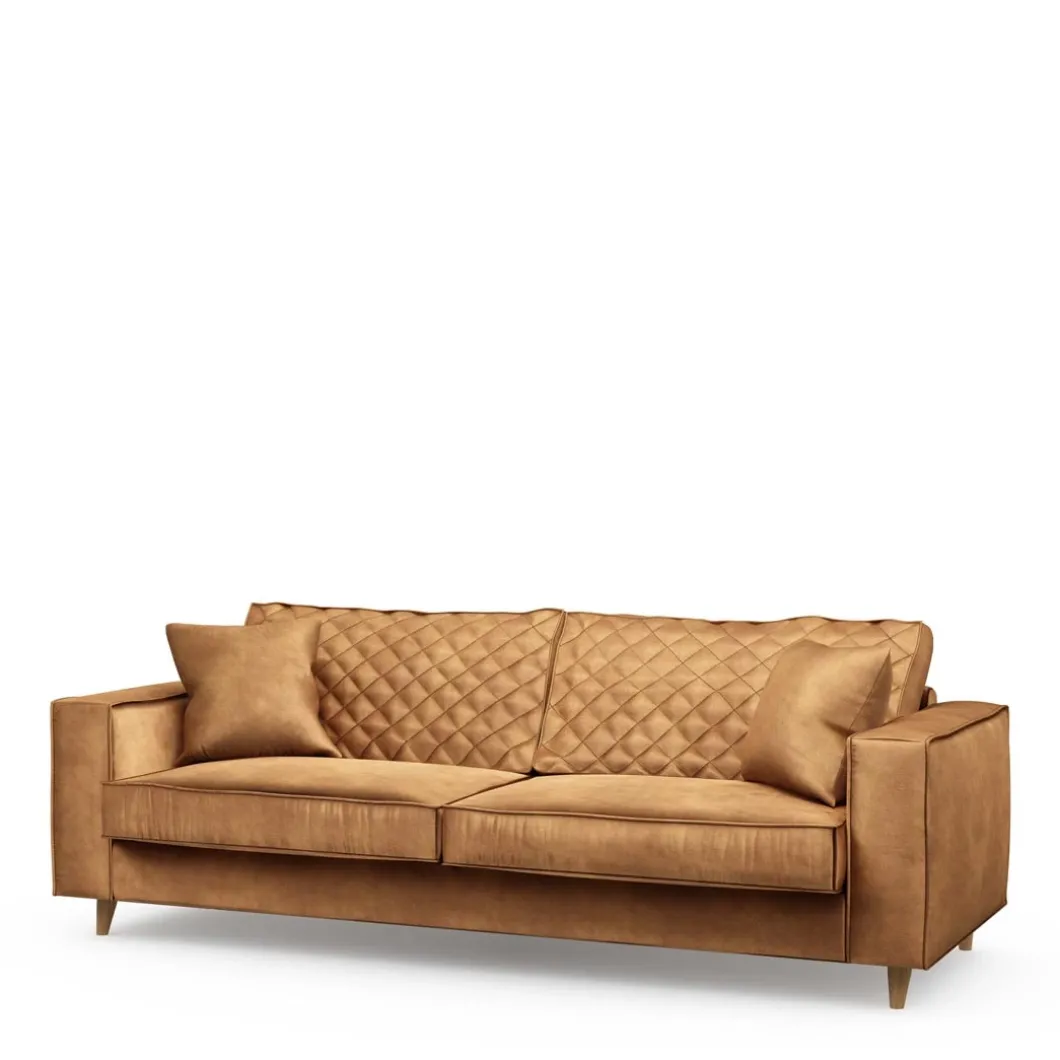 Wie eenmaal is neergestreken op de ‘Kendall’ sofa, die zal niet graag meer omhoog komen, zo prettig en zacht zit deze bank. De bijzondere vering bepaalt de stevigheid van de zitting, het zachte comfort komt van het dikke schuim dat in de kussens zit. Om de sofa af te maken is de hele bank bedekt met zacht velvet.