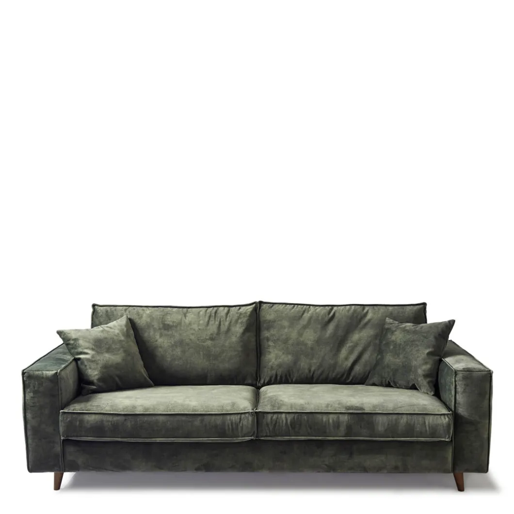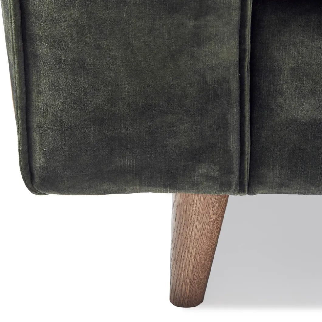 Wie eenmaal is neergestreken op de ‘Kendall’ sofa, die zal niet graag meer omhoog komen, zo prettig en zacht zit deze bank. De bijzondere vering bepaalt de stevigheid van de zitting, het zachte comfort komt van het dikke schuim dat in de kussens zit. Om de sofa af te maken is de hele bank bedekt met zacht velvet.