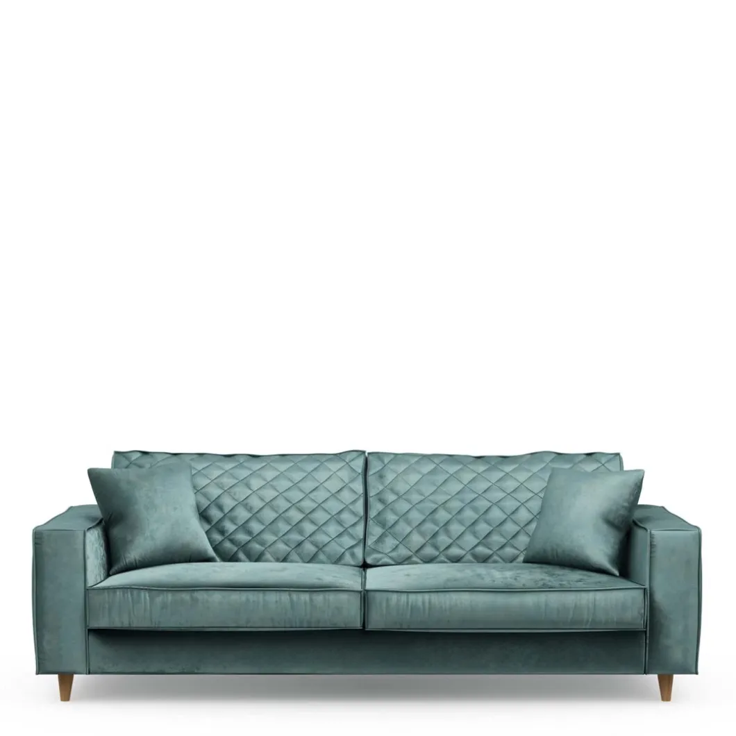 Wie eenmaal is neergestreken op de ‘Kendall’ sofa, die zal niet graag meer omhoog komen, zo prettig en zacht zit deze bank. De bijzondere vering bepaalt de stevigheid van de zitting, het zachte comfort komt van het dikke schuim dat in de kussens zit. Om de sofa af te maken is de hele bank bedekt met zacht velvet.