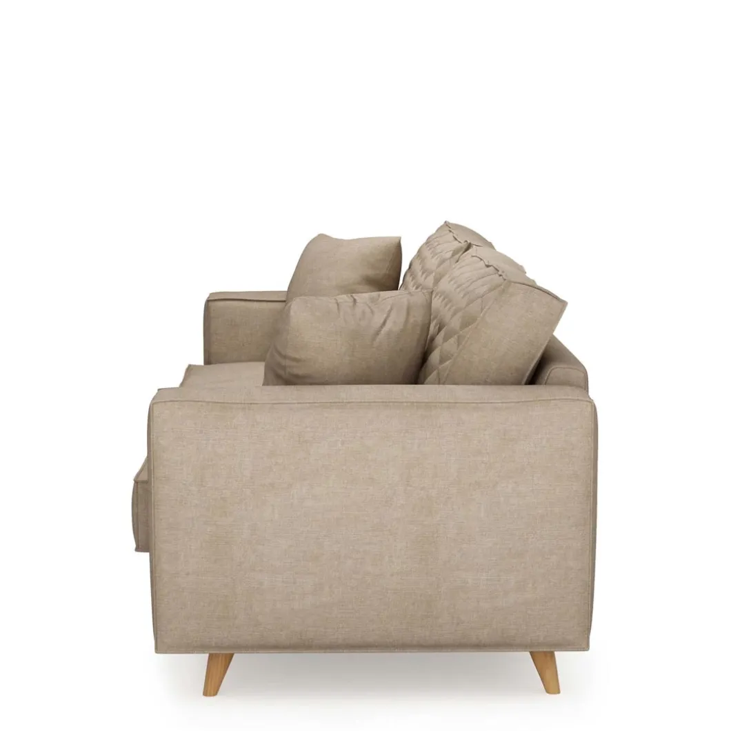 Wie eenmaal is neergestreken op de ‘Kendall’ sofa, die zal niet graag meer omhoog komen, zo prettig en zacht zit deze bank. De bijzondere vering bepaalt de stevigheid van de zitting, het zachte comfort komt van het dikke schuim dat in de kussens zit. Om de sofa af te maken is de hele bank bedekt met een zachte stof.