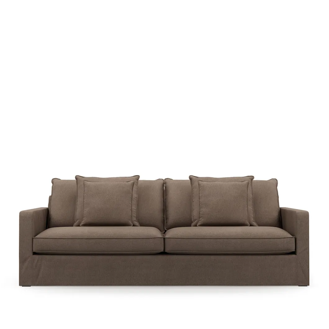 Een eigentijdse klassieke bank met een lekker diepe zit en volop kussens voor in de rug. Met een ruime zit voor meer comfort. Deze bank als 2,5- of 3,5-zits past uitstekend bij de fauteuil, poef en love seat van Lennox. Je zithoek helemaal in één stijl, of ga mixen met andere stijlen. De bekleding van recycled weave is bottle brown van kleur.