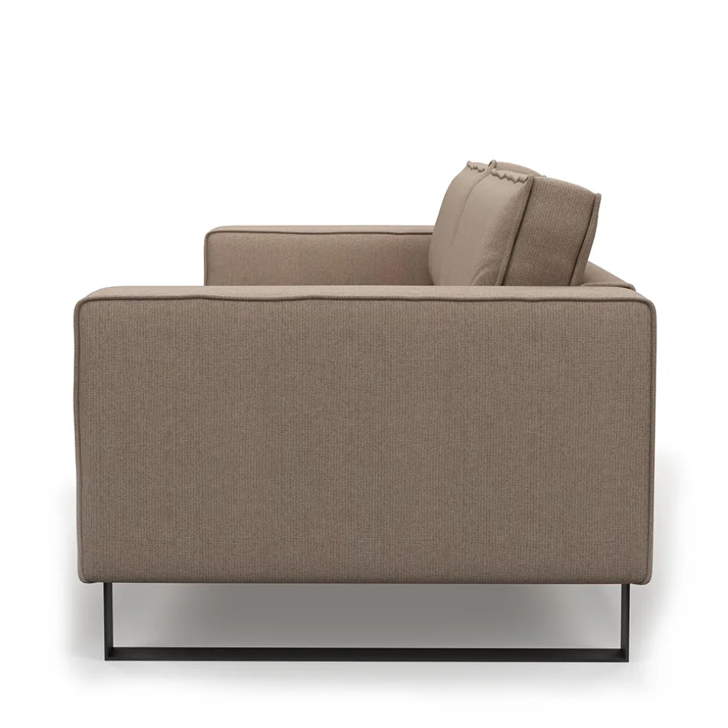 De Scott Sofa is een moderne 3,5 seater. Deze bank kenmerkt zich door de strakke lijnen van de rug- en armleuningen die op gelijke hoogte doorlopen. Tegen de rug zijn twee losse kussen geplaatst, waardoor je kunt spelen met de zitdiepte van de bank.
