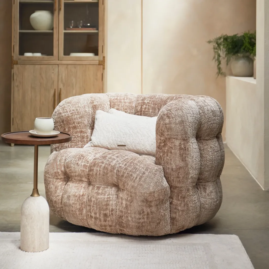 Kom helemaal tot rust in de Arosa fauteuil, een prachtige aanvulling op jouw interieur. Het moderne design en de luxe stof voegen werkelijk iets bijzonders toe aan jouw ruimte. Met een comfortabele zitting is deze draaistoel perfect voor de woonkamer, slaapkamer of entree, en voegt zowel stijl als comfort toe aan elke setting.