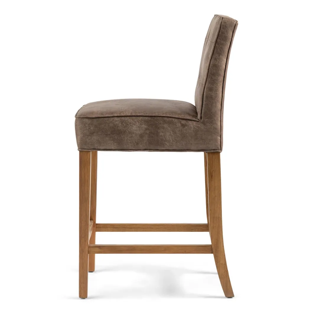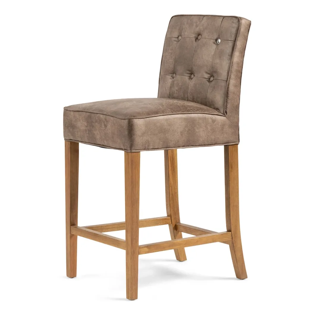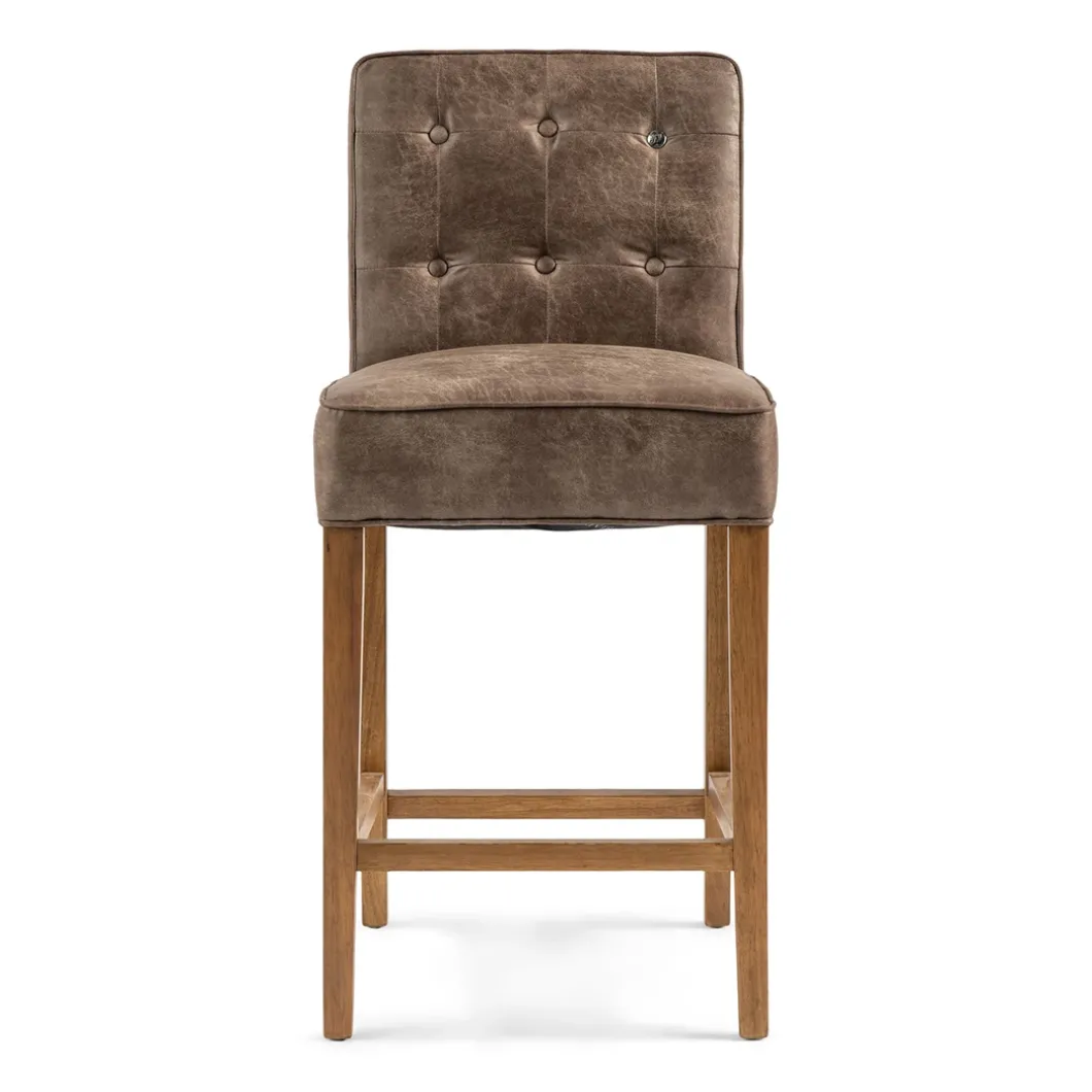 Een comfortabele barkruk voor aan een kookeiland of hoge tafel, dat is de Cape Breton Counter Stool, een klassieke barkruk uit de collectie van Rivièra Maison. De bekleding is van stoer pellini leer. Opvallende details van deze stoel zijn de zilveren knoop in de capitonnering en de jashaak op de carpetleuning. Deze stoel komt in verschillende uitvoeringen, materialen en kleuren.
