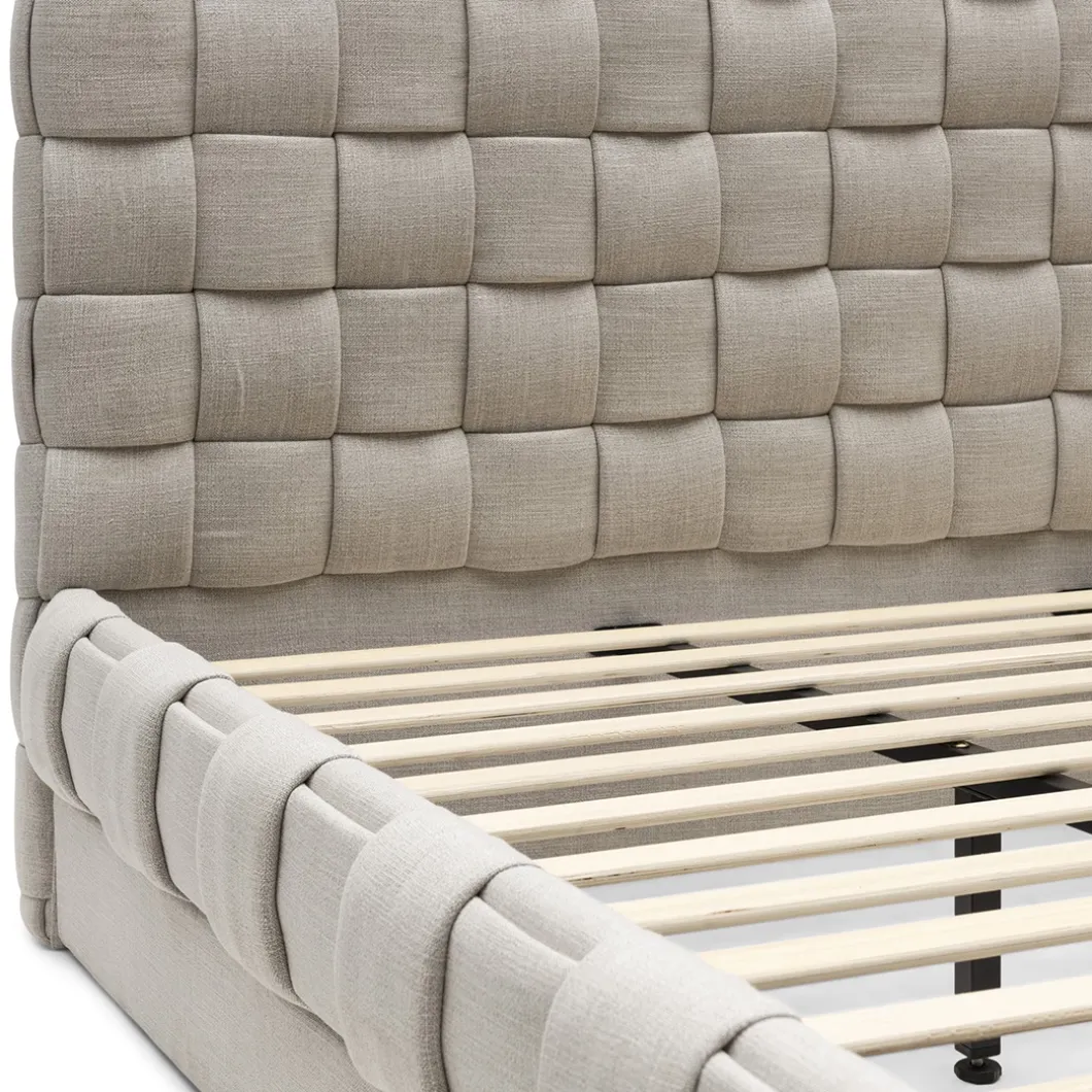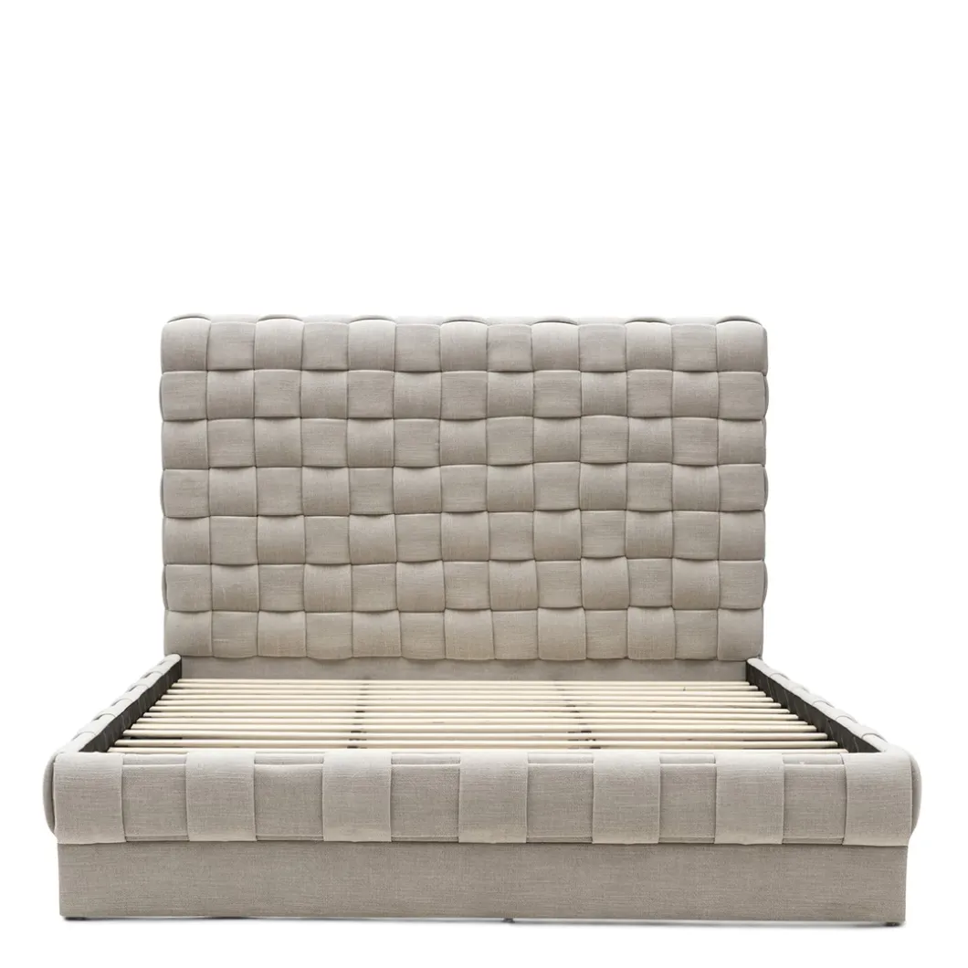 Een ware eyecatcher in de slaapkamer, haal met dit bedframe het hotel-chic gevoel in huis. Het Room 48 Double Bed heeft een hand gevlochten bekleding van fijne Mouliné Linen, in de kleur Fabulous Flax. Het stevige houten onderstel van dennenhout garandeert jarenlang slaapplezier. Dit bed komt uit de Room 48 serie, daarin vind je ook bijpassende poefs, footstools, bankjes en stoelen. Het bedframe wordt met lattenbodem geleverd, afmeting lattenbodem Lengte 200 cm x breedte 180 cm. (matrasmaat) Totale afmeting van de Room 48: Lengte 220 cm x breedte 195 cm x ondermaat 37.5 cm. (lattenbodem hoogte 30 cm )Exclusief matrashoogte. Voorbeeld: Matras L 200cm x B 180cm x H25 cm geeft hoogte van 55cm. Totale Headboard hoogte van de Room 48 is 145cm hoog.
