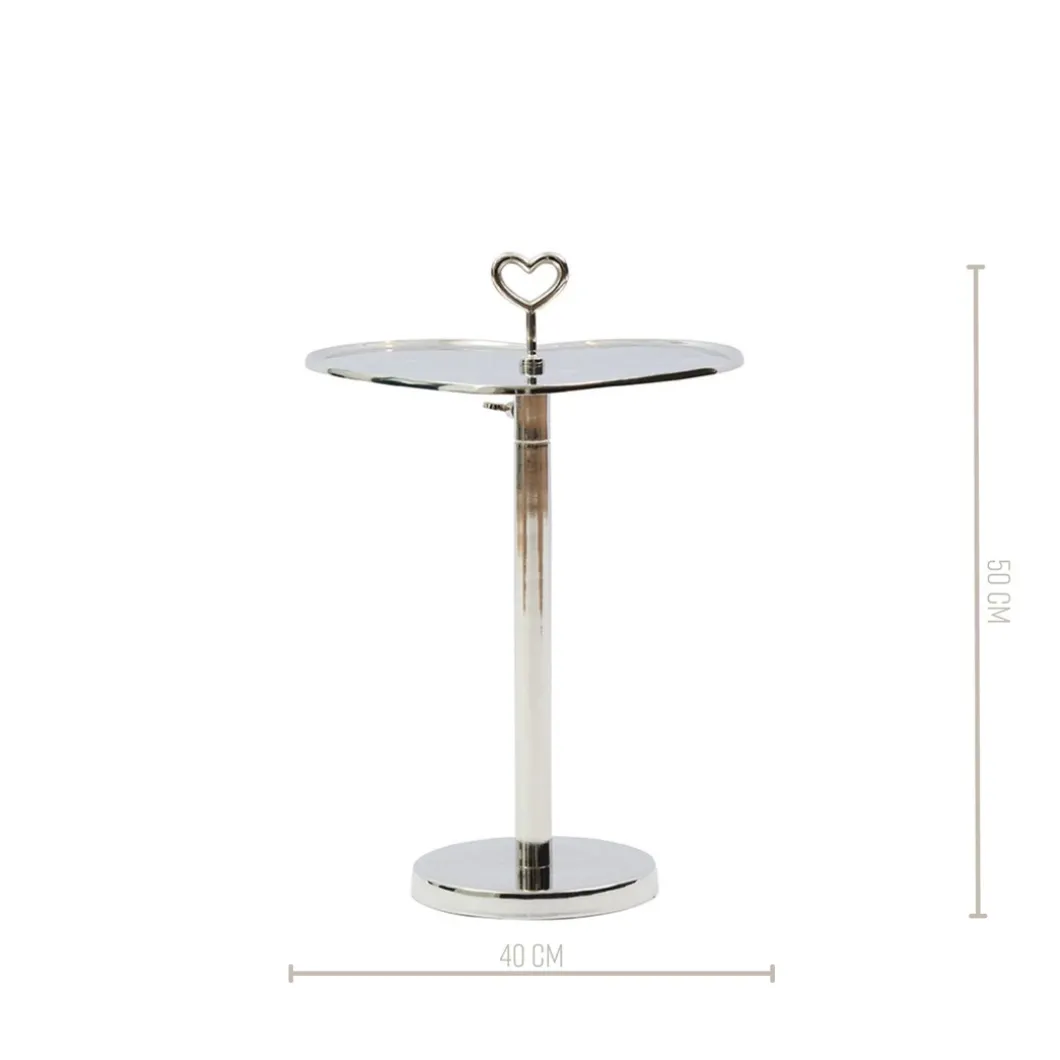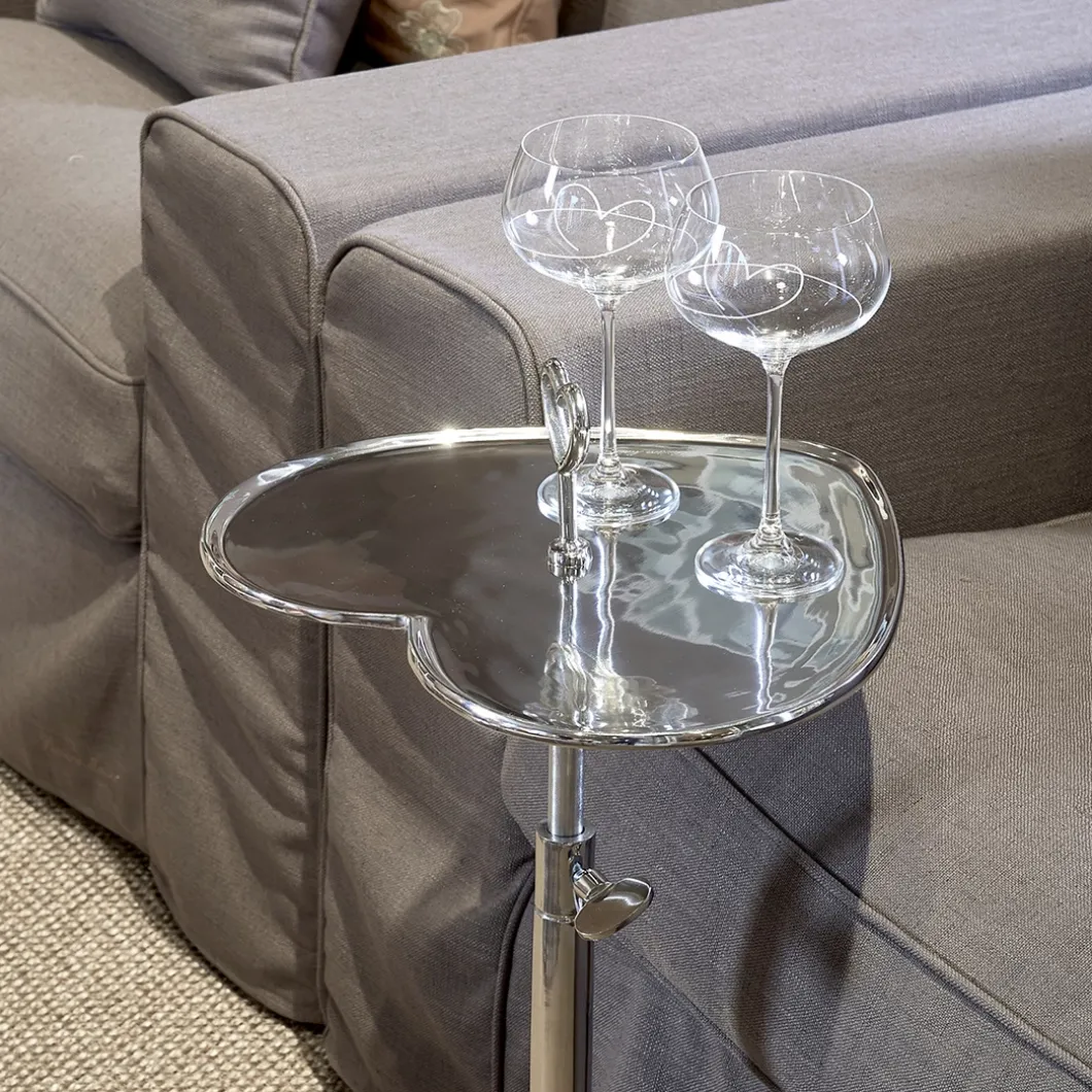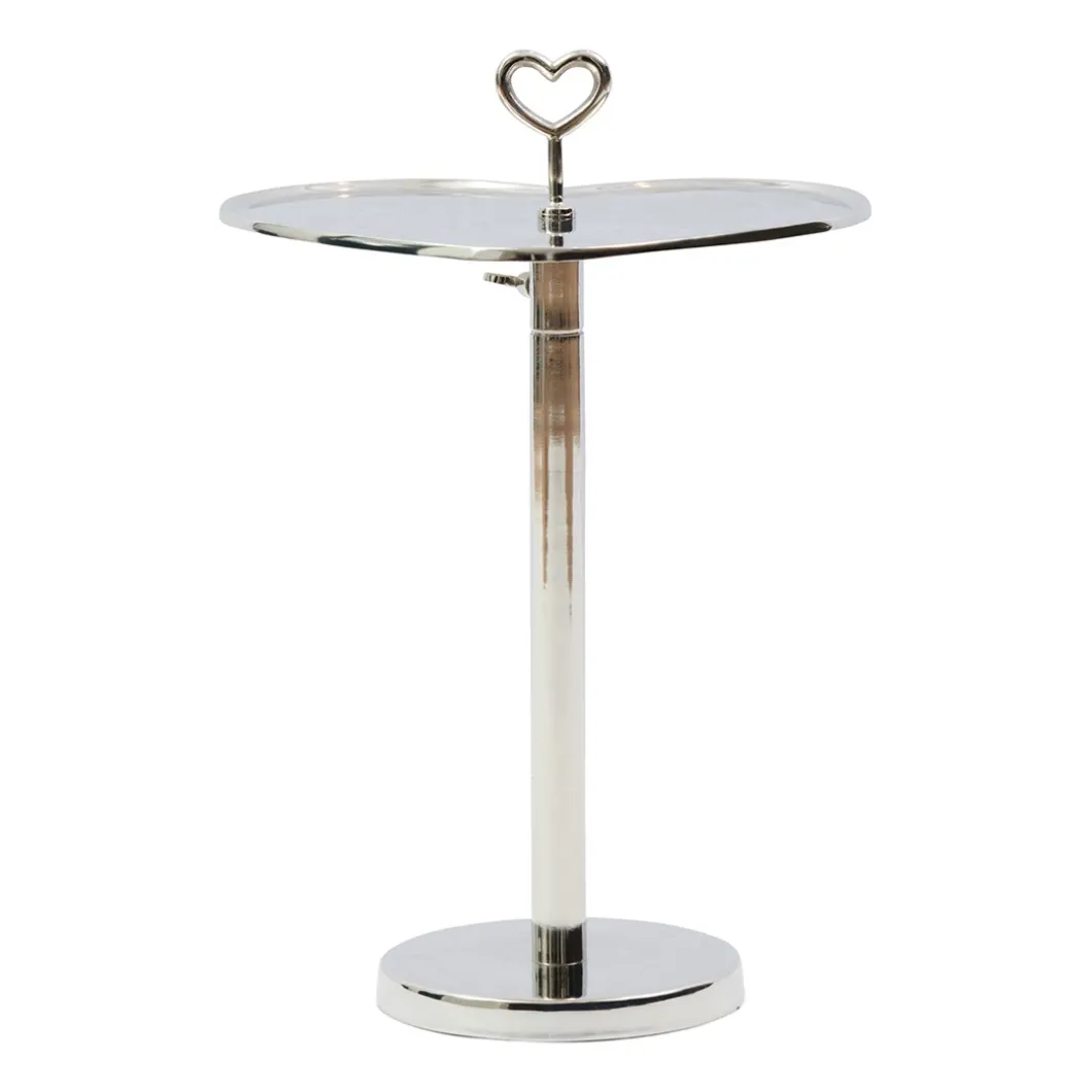 De Lovely Heart Adjustable End Table is een bijzettafel die in hoogte verstelbaar is. Door te draaien aan het hartvormige tafelblad maak je het tafeltje hoger of lager. De aluminium bijzettafel in zilver heeft ook een handvat in de vorm van een hart waarmee je de bijzettafel eenvoudig optilt en verplaatst.