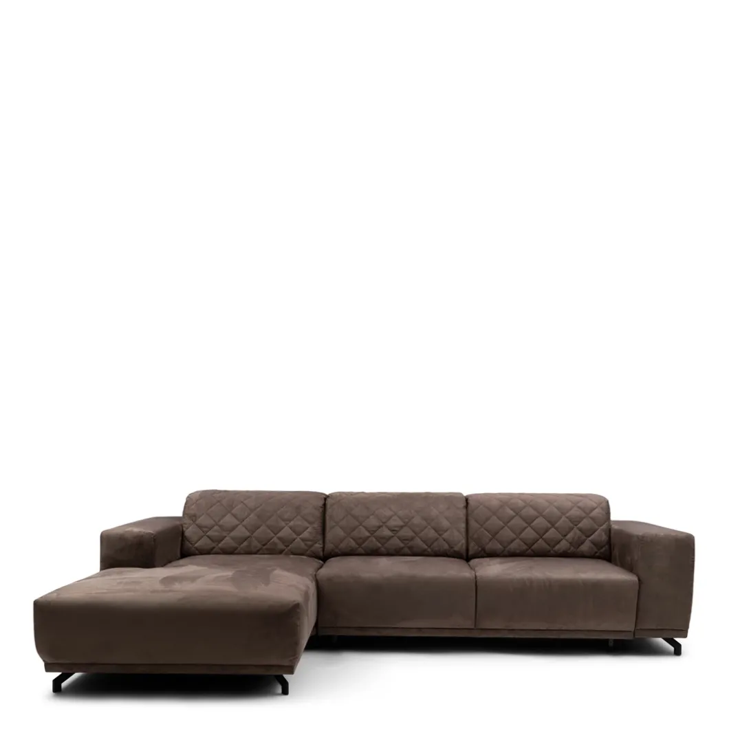 De Marciana Sofa is een comfortabele bank in combinatie met een chaise longue. Die zowel in een linker als rechter uitvoering beschikbaar is. Er is ook een uitvoering met een elektrisch verstelbare zitting in de bank zelf. De bank heeft een scottish suede bekleding, in de kleur brown sugar. Het framewerk is van beukenhout.
