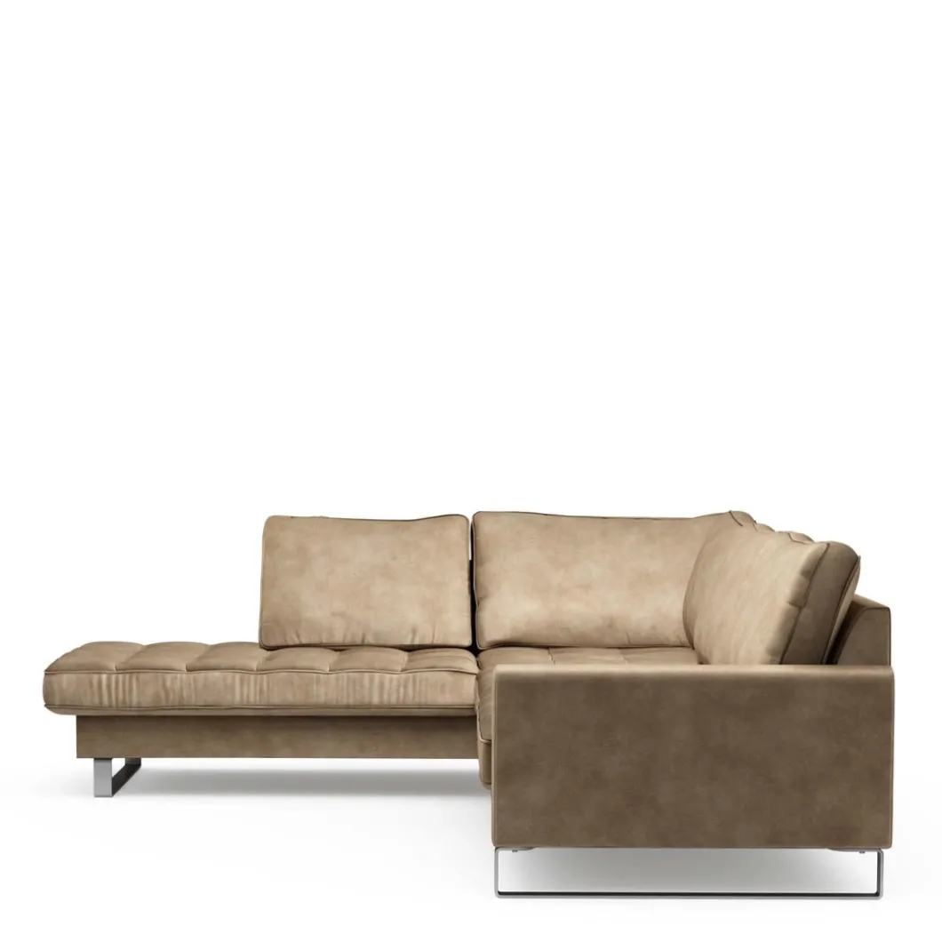 Deze luxe hoekbank met gecapitoneerde Chaise Longue en metalen onderstel heeft een strakke, frisse en moderne uitstraling. Een echte eyecatcher in uw interieur die ook nog eens ontzettend lekker zit. Verkrijgbaar in verschillende uitvoeringen en kleuren.