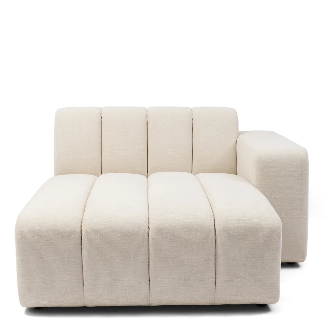 Creëer jouw ideale zithoek met het Dazzle Chaise Longue-element, een perfecte aanvulling voor de rechterkant van je modulaire bank. Dit veelzijdige stuk combineert ultiem comfort met een verfijnde uitstraling. De gestikte banen in de rug en zitting zorgen voor een naadloze overgang tussen de elementen, terwijl het elegante ontwerp in de zachte kleur Soft White een tijdloze sfeer toevoegt aan je interieur. Dankzij het handige schuifsysteem pas je eenvoudig de opstelling aan om jouw perfecte zithoek te creëren.