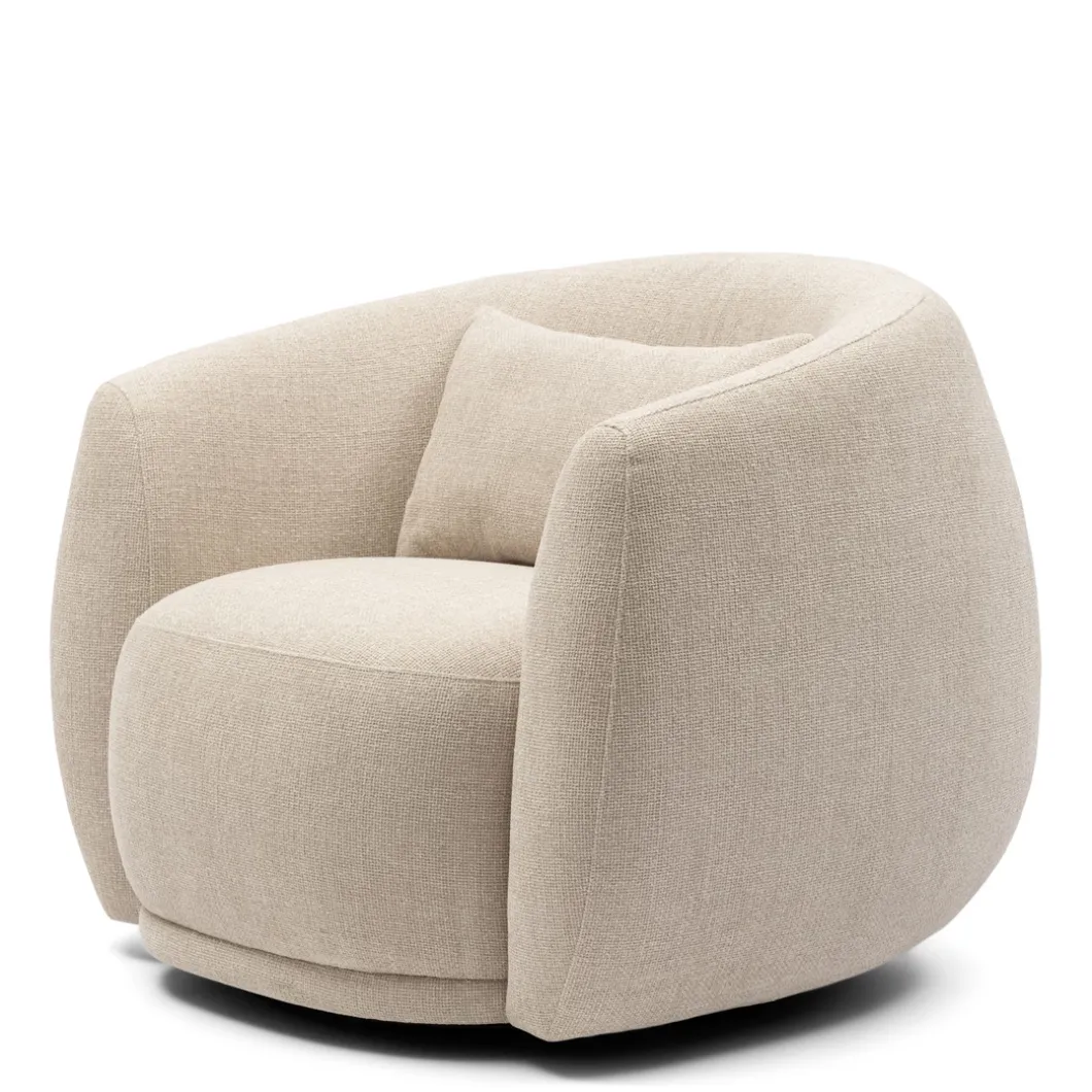 - Deze draaibare fauteuil met armleuningen is ontworpen voor ultiem comfort en stijl. De ronde vormen, rijke stof en fijne zitting zorgen voor een luxe zitervaring in elke ruimte. De draaifunctie maakt het eenvoudig om je zitpositie aan te passen, terwijl de armleuningen extra steun en een gevoel van luxe bieden. Ideaal voor een ontspannen leeshoek of een gezellige zithoek in je woonkamer.