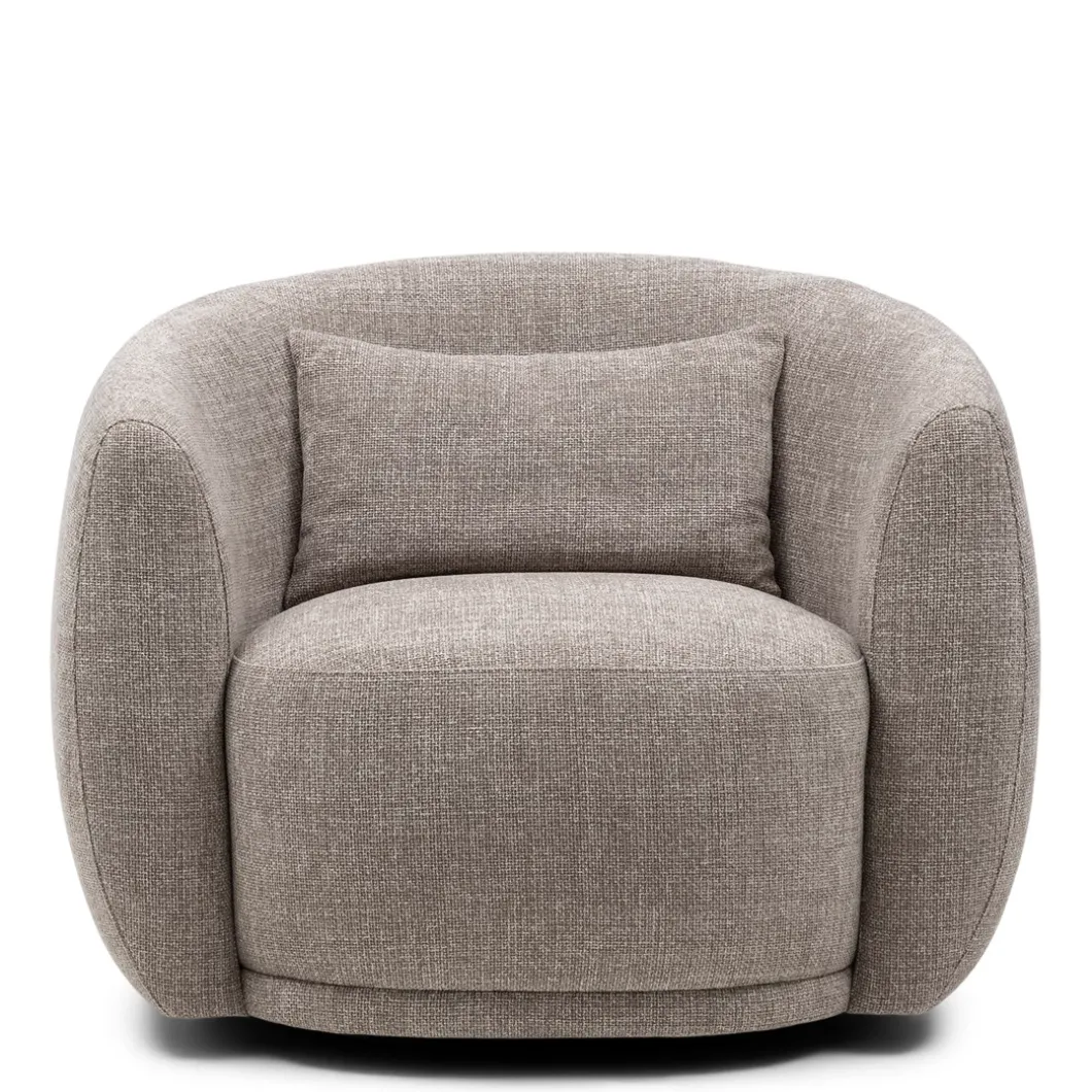 - Deze draaibare fauteuil met armleuningen combineert moeiteloos comfort en elegantie. De ronde vormen en de rijke stof omhullen je in luxe, terwijl de zachte zitting een heerlijke zitervaring biedt. Dankzij de draaifunctie kun je eenvoudig je zitpositie aanpassen, en de armleuningen zorgen voor extra steun en een verfijnde uitstraling. Ideaal voor een stijlvolle leeshoek of zithoek in je woonkamer.